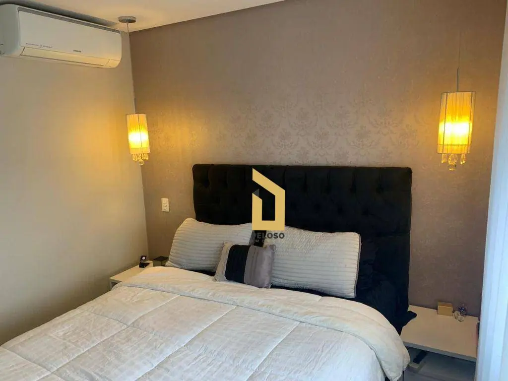 Ar condicionado na suíte, cortinas em todos os cômodos, lustre de cristal na sala. Piso em porcelanato e vinílico nos quartos.