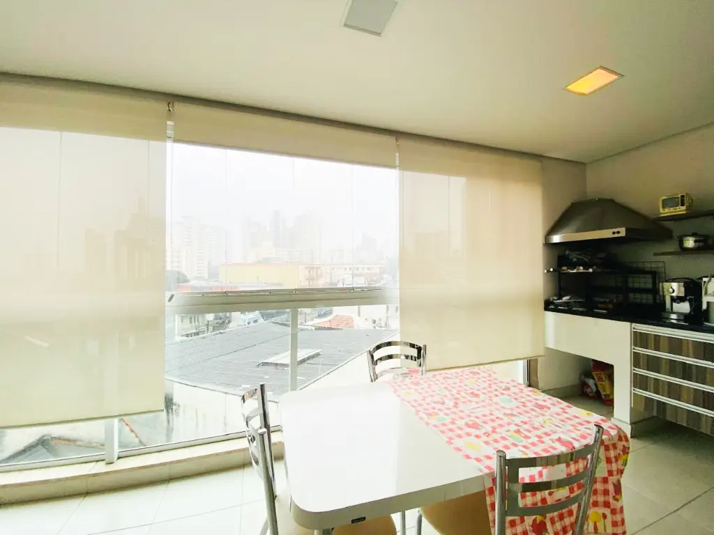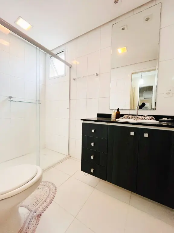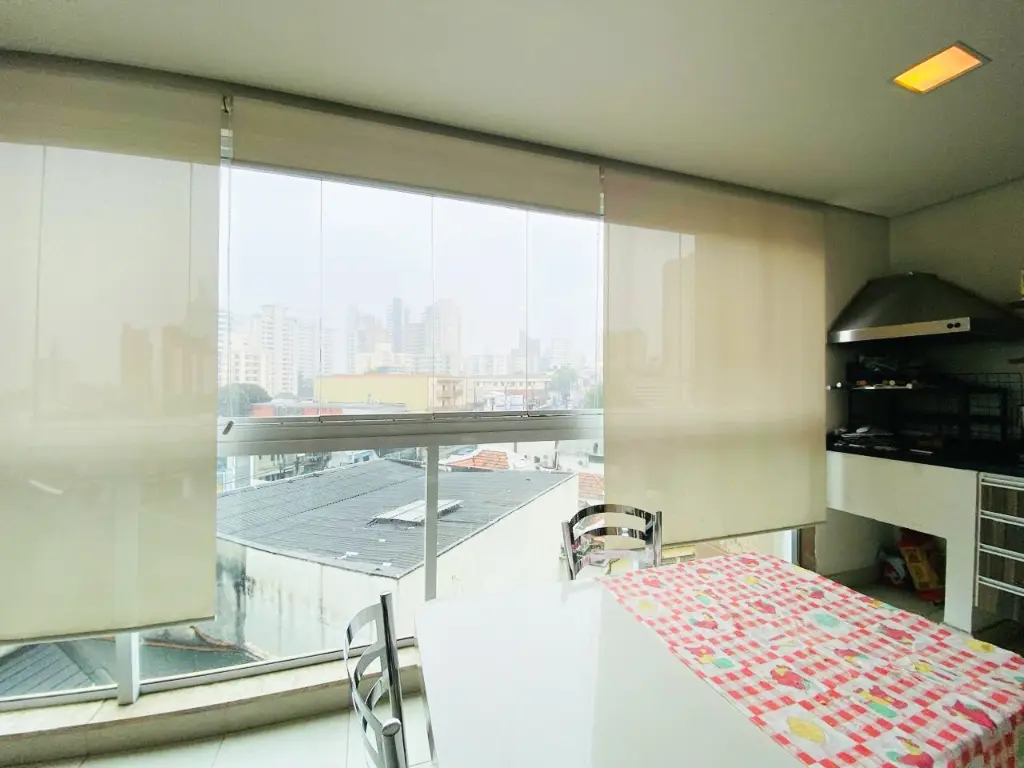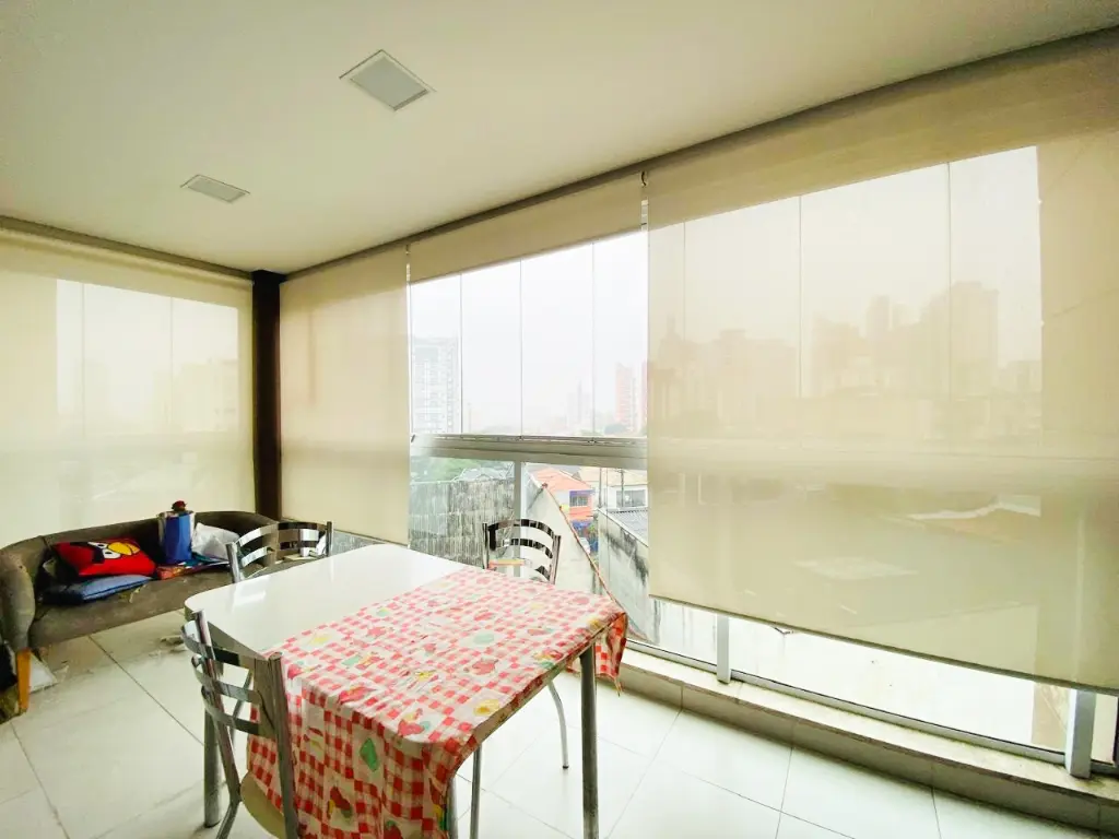 Varanda gourmet com fechamento em vidro e linda vista livre. Para completar e deixar esse imóvel mais perfeito ainda: Ele possui três vagas de garagem fixas, rico em móveis planejados e com ar condicionado.