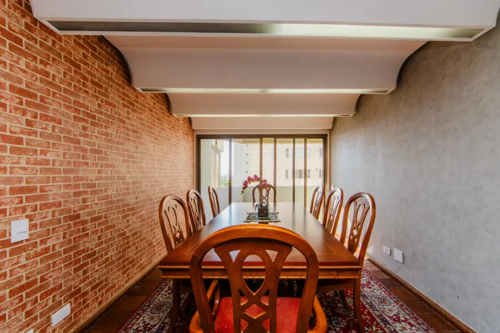 O design do apartamento inclui 9 cômodos bem distribuídos em uma sala para 3 amplos ambientes, 4 confortáveis quartos, sendo os 4 suítes, dependência de empregada completa, e um total de 6 banheiros, garantindo espaço e privacidade para todos. As 4 vagas de garagem fornecem praticidade e segurança para sua família e visitantes.