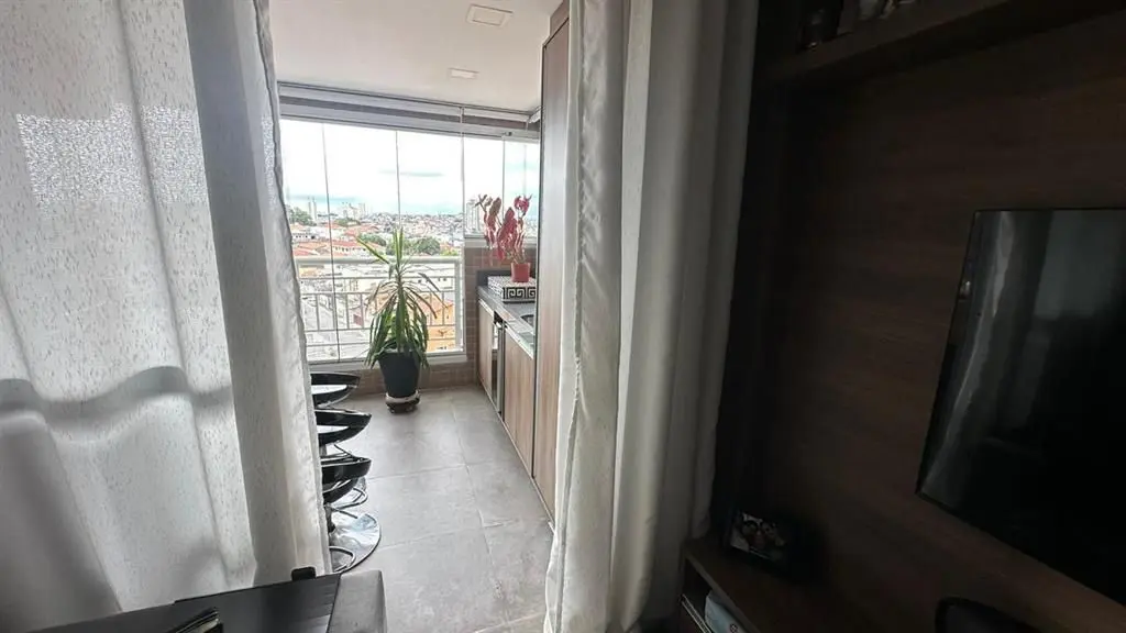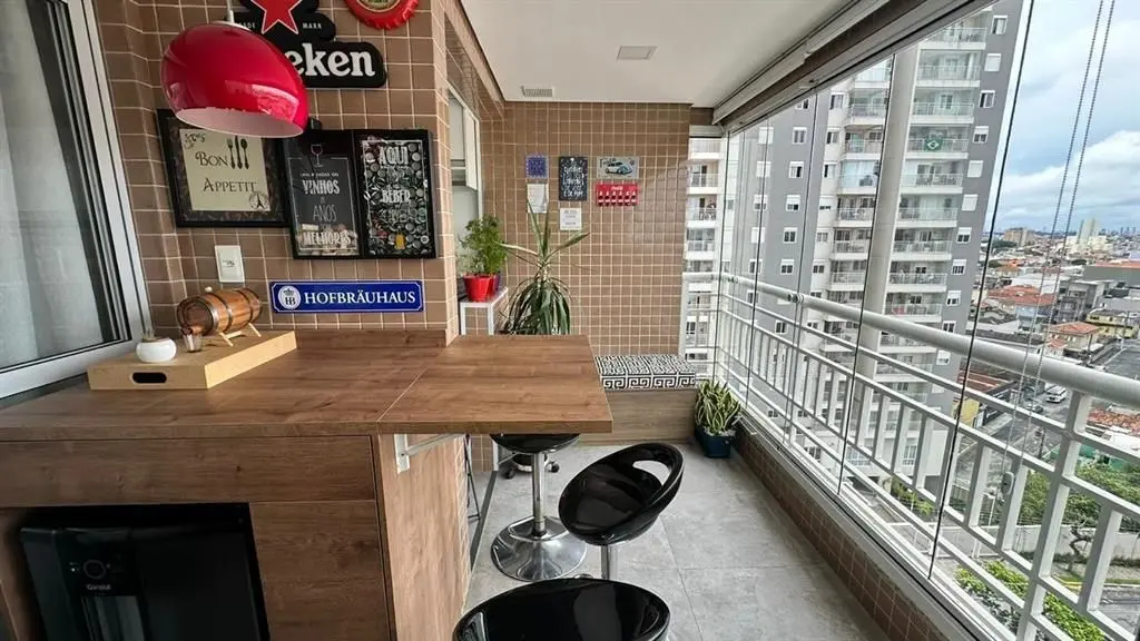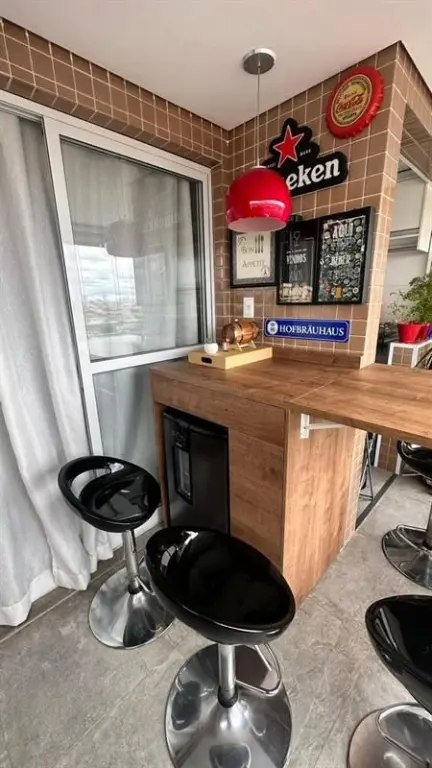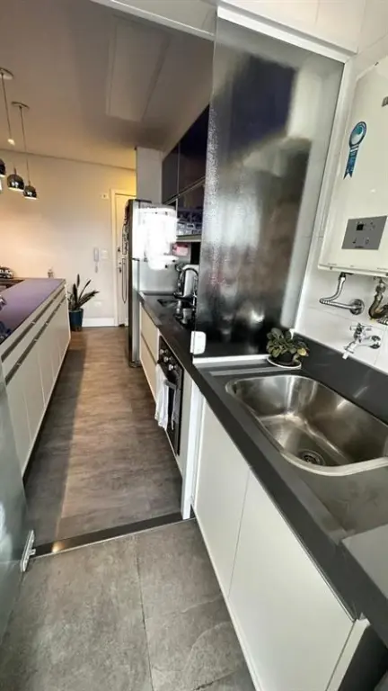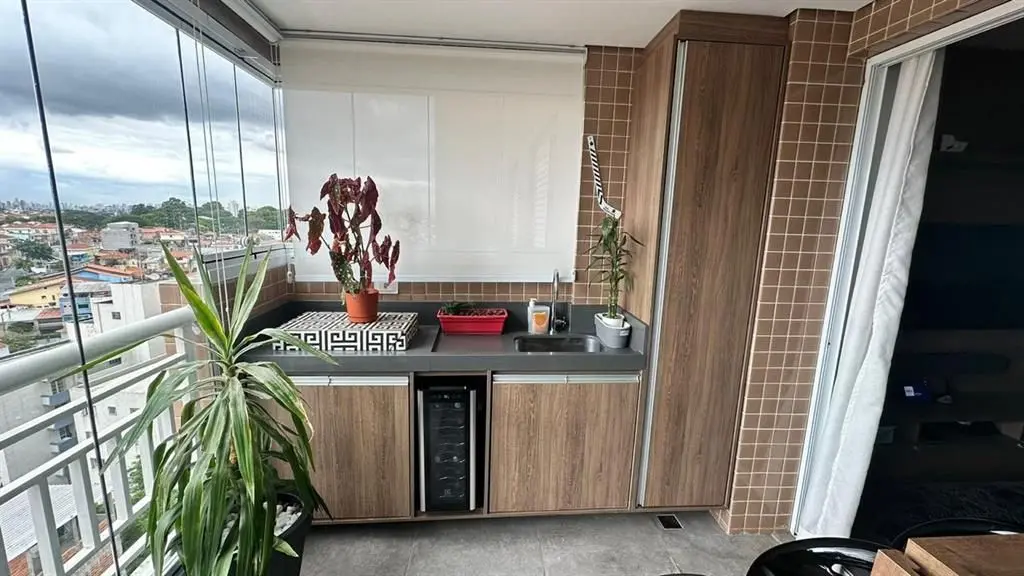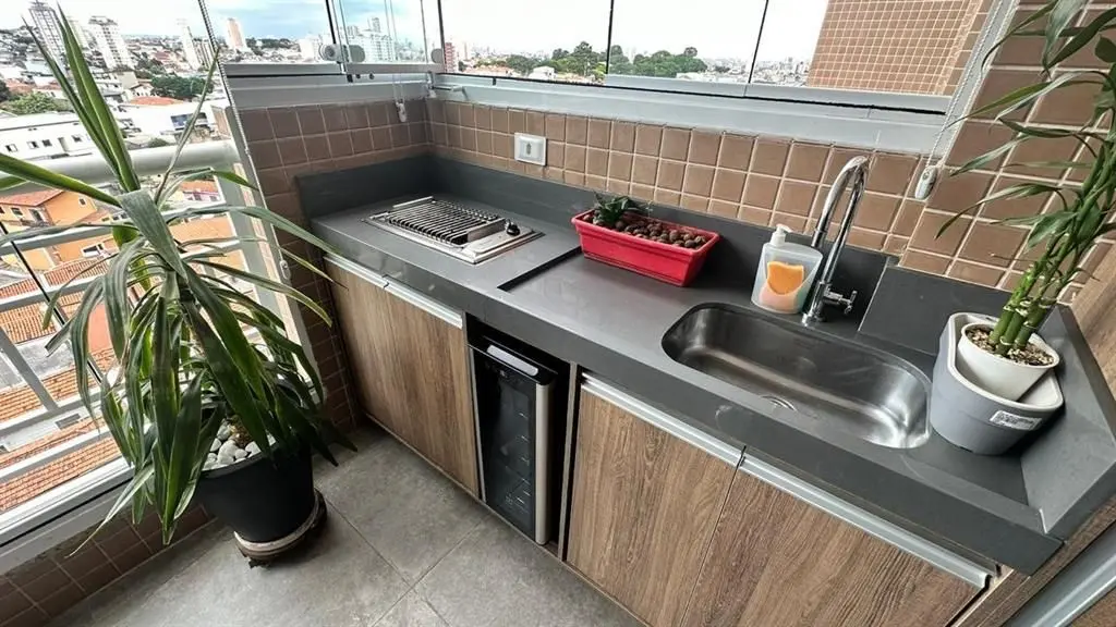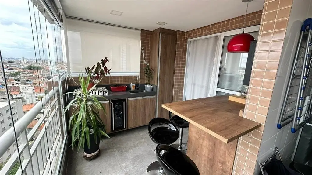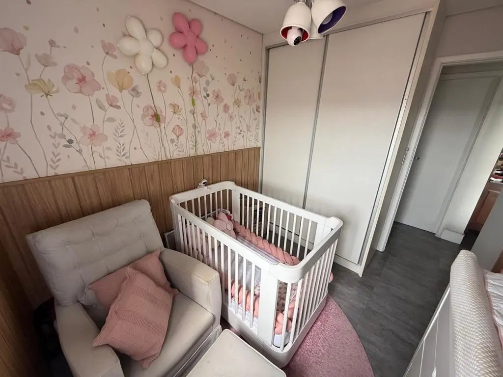 O imóvel dispõe de 2 dormitórios, sendo 1 suíte, living para dois ambientes integrado à varanda gourmet, que possui fechamento em vidro e churrasqueira. A cozinha é no estilo americano, totalmente planejada, e o apartamento conta ainda com iluminação automatizada em todos os ambientes, banheiro social e área de serviço.