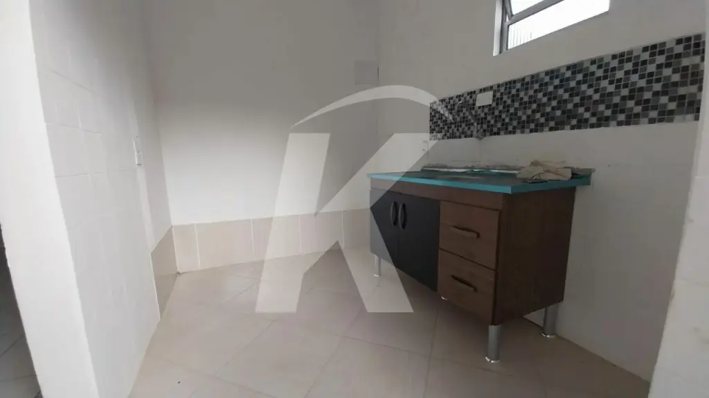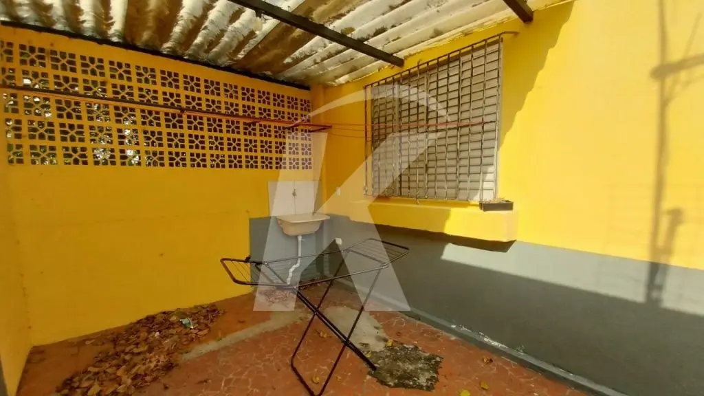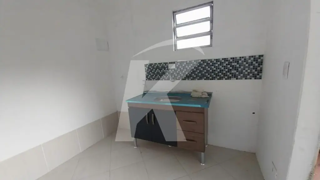 Casa térrea residencial com 1 dormitório, sala, cozinha, banheiro, área de serviço, quintal compartilhado, 1 vaga de garagem para carro pequeno ou moto.