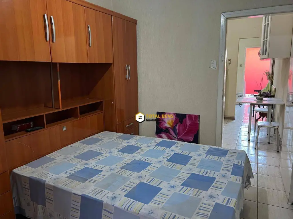 Casa mobiliada com 1 dormitório, sala, cozinha, banheiro e lavanderia.