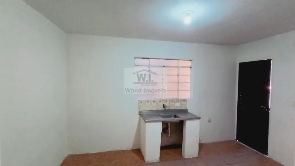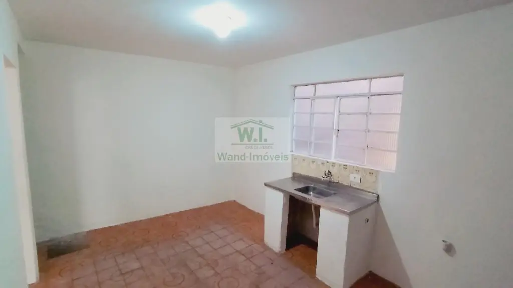 Casa com 1 dormitório, cozinha, banheiro, área de serviço.