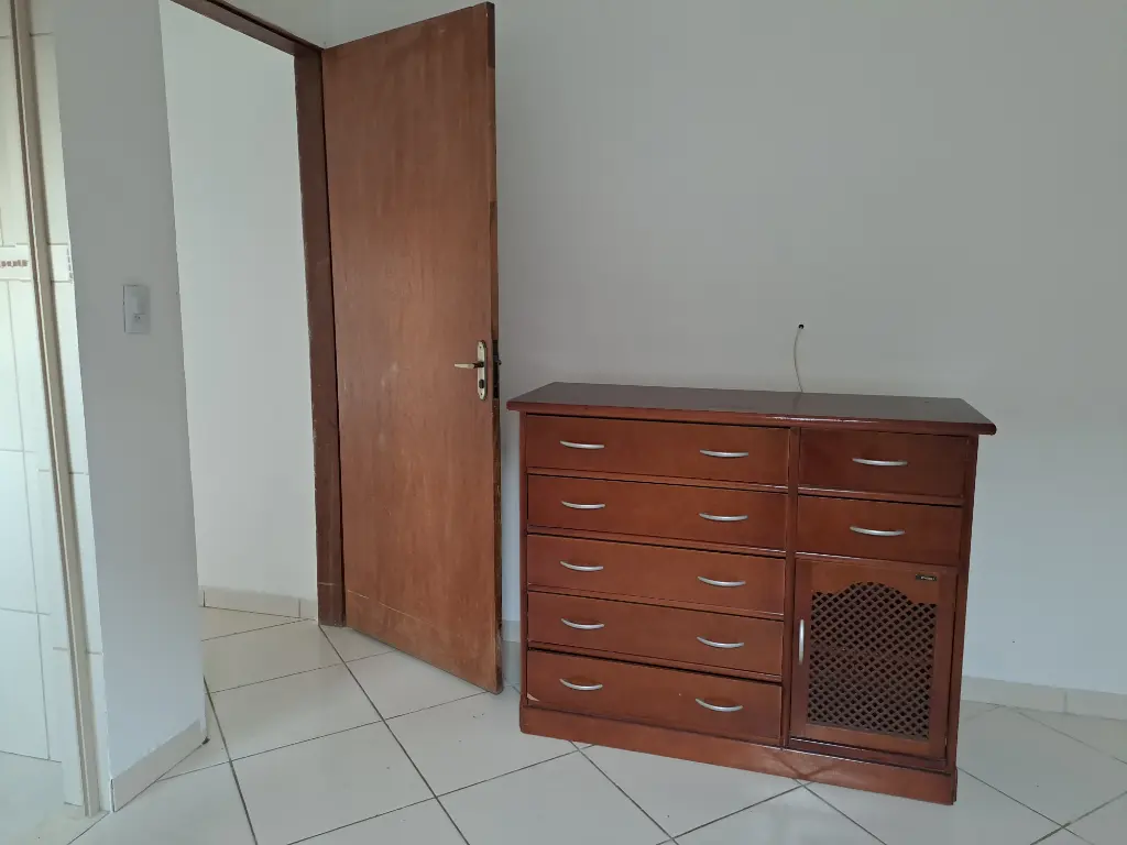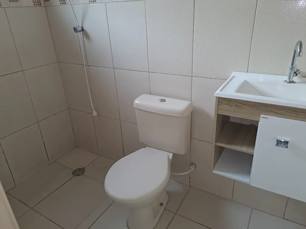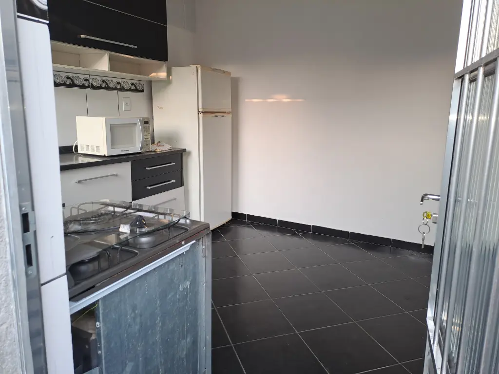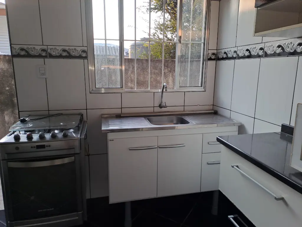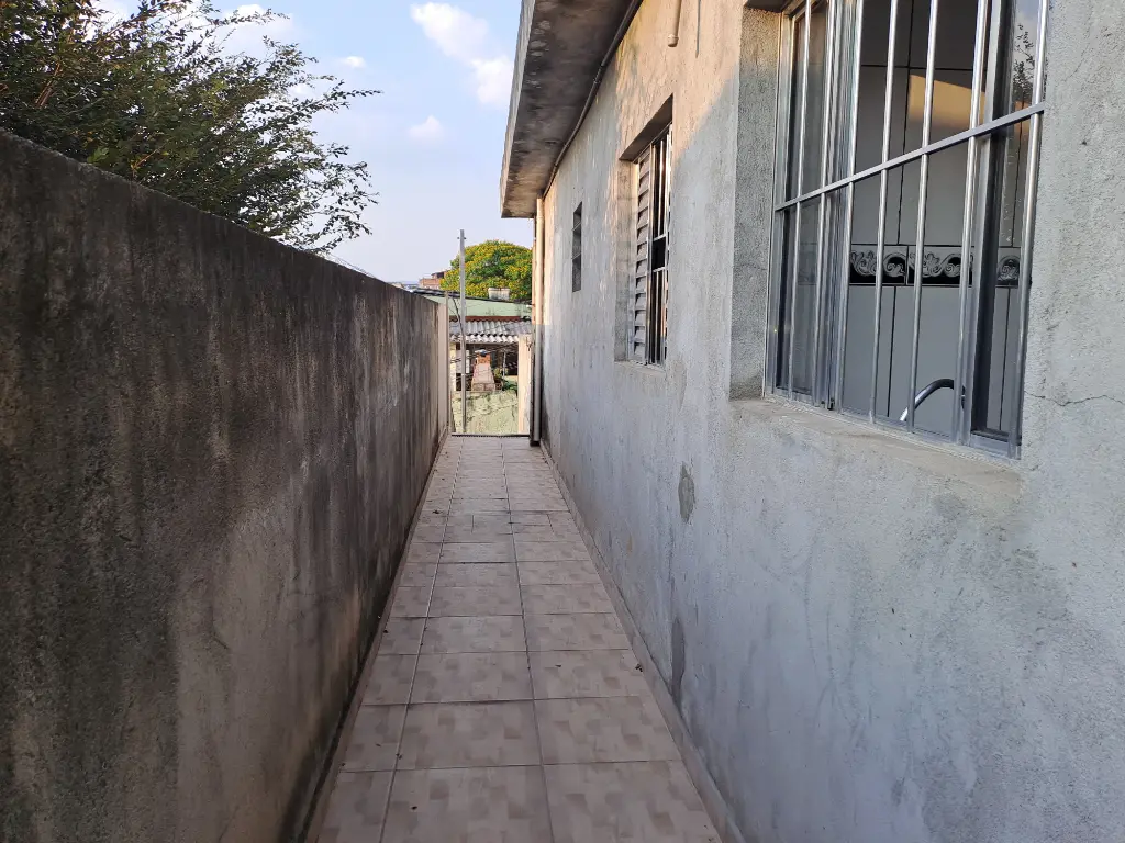 Casa térrea de laje e telhado no fundo, água e luz independente, corredor lateral, um dormitório, cozinha, área de serviço grande nos fundos, na frente já possui outro inquilino, entrada única para as duas casas e portão para entrada na casa dos fundos, Acabamento em piso frio, pintura nova, ideal para casal, não possui fogão, aceita seguro fiança ou três meses de depósito caução, necessário comprovação de renda