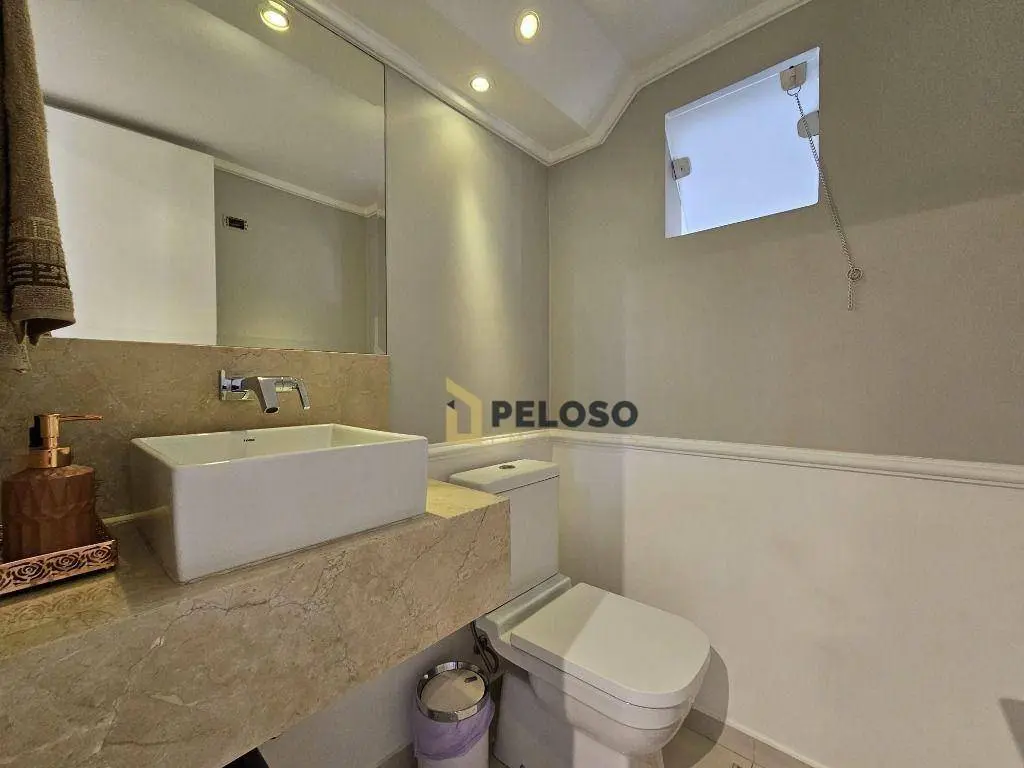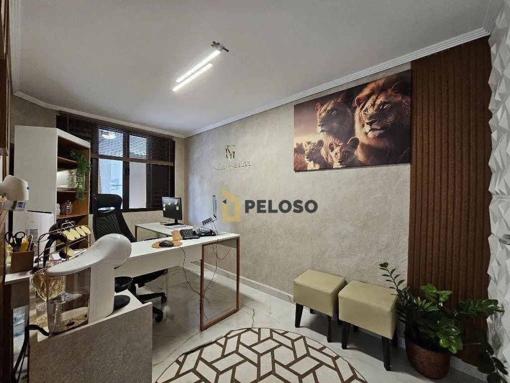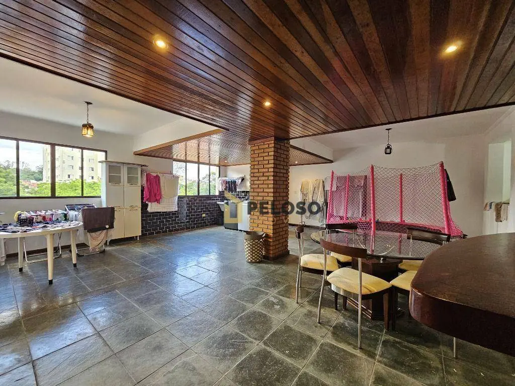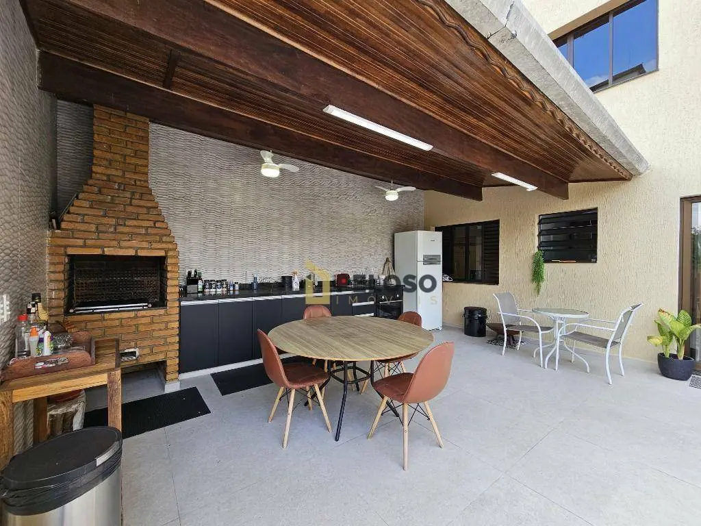 3 dormitórios com armários sendo 1 suíte, banheiro social, sala de estar, sala de jantar, lavabo, cozinha equipada com fogão embutido e armários, espaço gourmet com amplo quintal, sala de tv, banheiro social, escritório, área de serviço, salão de festas com barzinho e depósito.