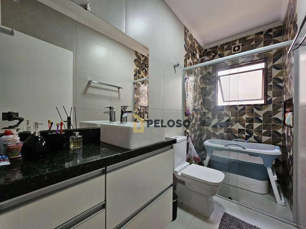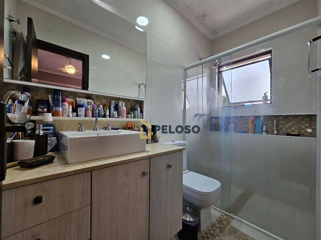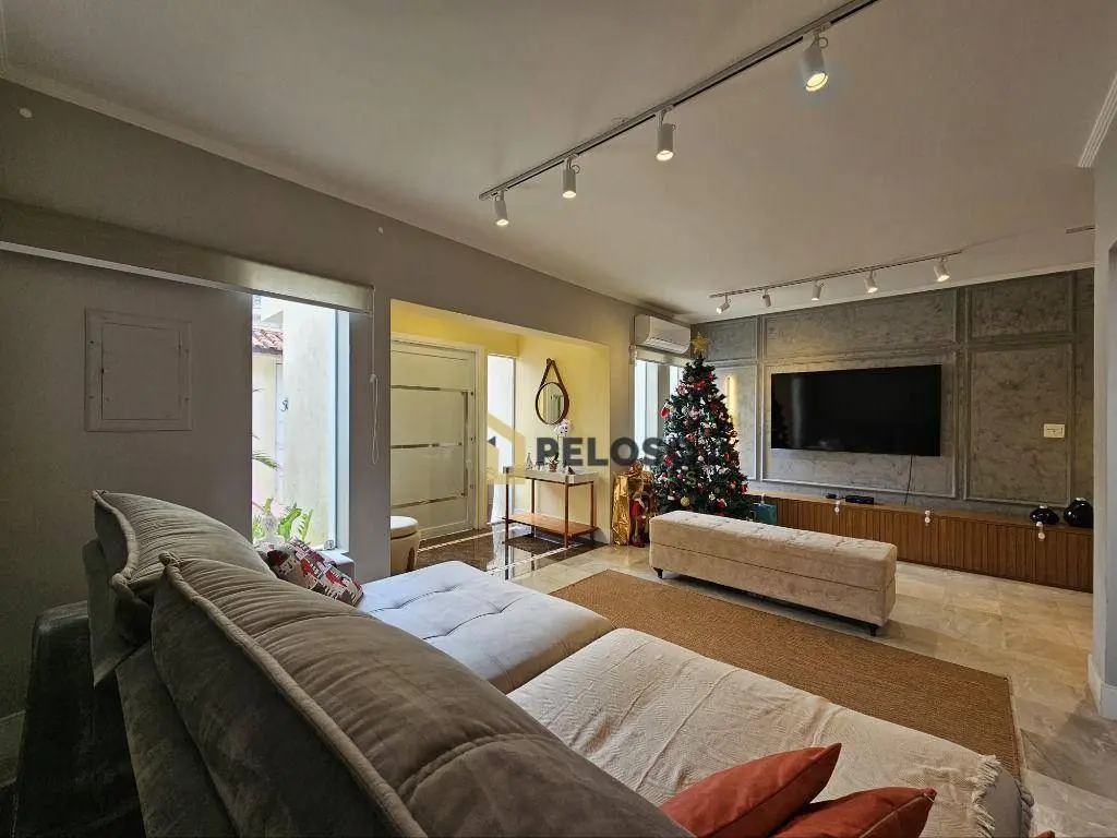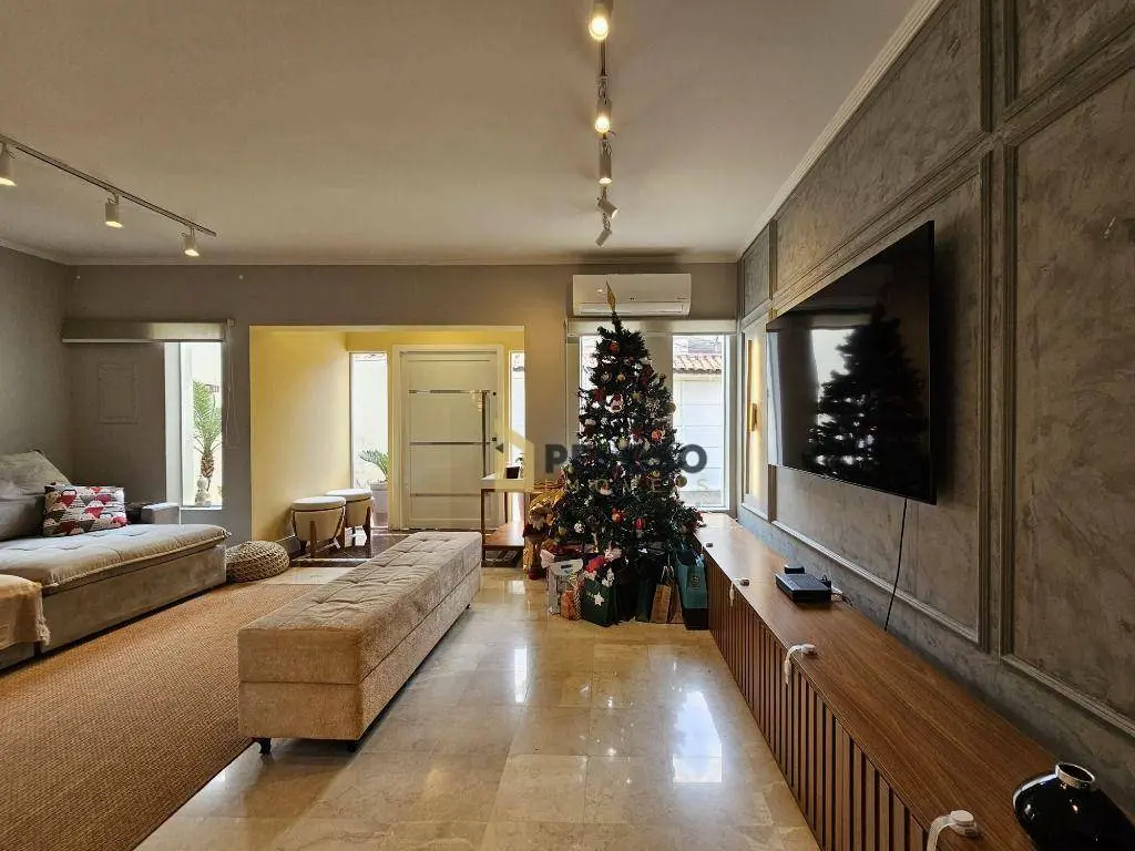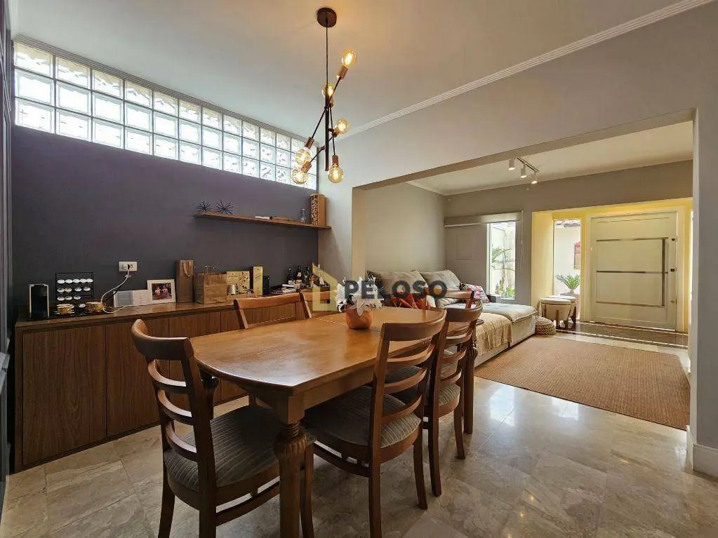 3 dormitórios com armários sendo 1 suíte, banheiro social, sala de estar, sala de jantar, lavabo, cozinha equipada com fogão embutido e armários, espaço gourmet com amplo quintal, sala de tv, banheiro social, escritório, área de serviço, salão de festas com barzinho e depósito.