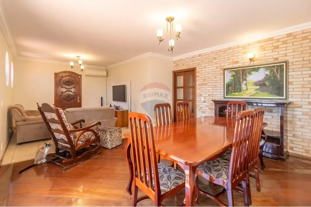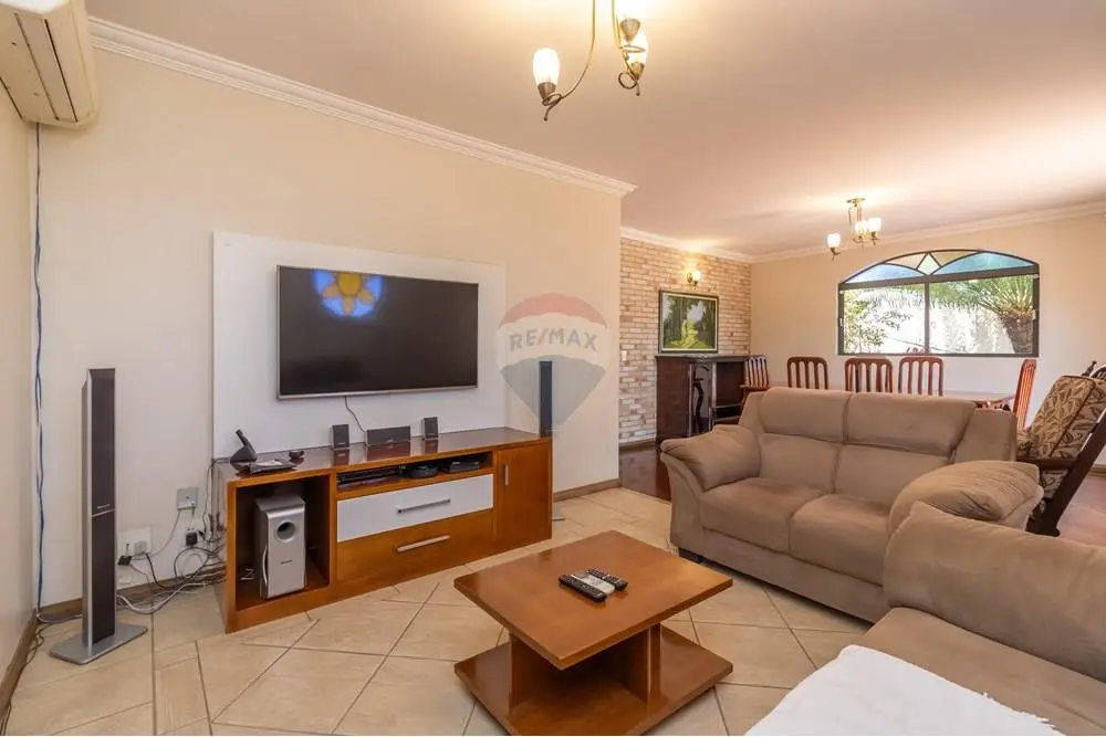 A casa principal é cercada por quintal em todo o entorno e possui sala ampla para 2 ambientes com piso de madeira, ar-condicionado e ampla varanda com vista livre. São 3 dormitórios, sendo 1 suíte e outro transformado em escritório, todos com marcenaria de madeira de excelente qualidade. A suíte e o dormitório contam com ar-condicionado. Banheiro social espaçoso. Cozinha grande, repleta de armários, integrada à copa. Aquecimento de água a gás.