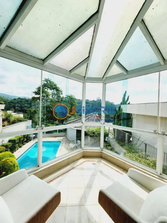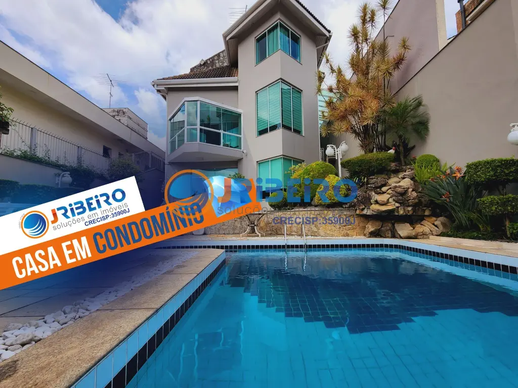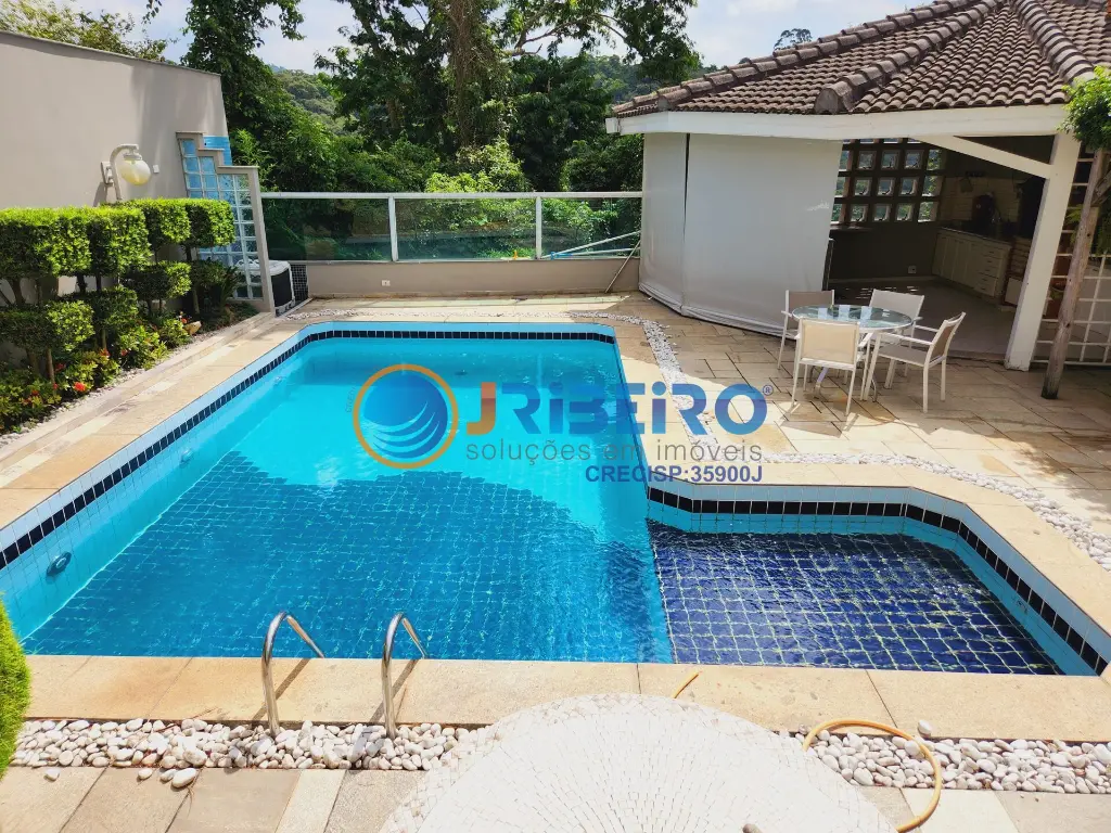 Casa em condomi´nio com 600 m2 de a´rea construi´da, piscina, espac¸o gourmet com churrasqueira, 4 sui´tes, sendo a sui´te ma´ster com closet e hidromassagem, living para amplos ambientes integrados como sala de estar, sala de jantar, sala de lareira, 2 salas de TV, cozinha com arma´rios planejados, lavanderia e 8 vagas de garagem.