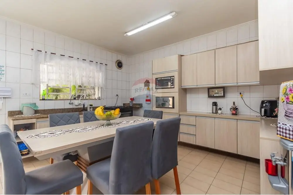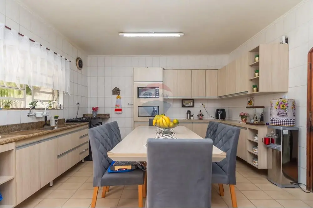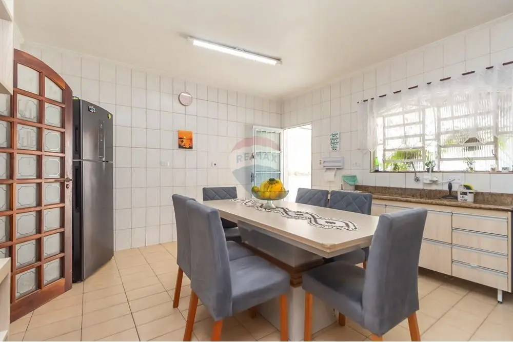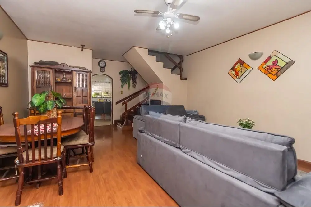 A entrada revela uma sala ampla e bem iluminada, com espaço para dois ambientes estar e jantar perfeita para receber visitas ou simplesmente relaxar após um dia cheio. A cozinha é um dos destaques do imóvel: equipada com armários planejados, oferece excelente organização, boa circulação e praticidade no preparo das refeições. No piso térreo, há ainda um banheiro completo, trazendo comodidade para o uso diário.
