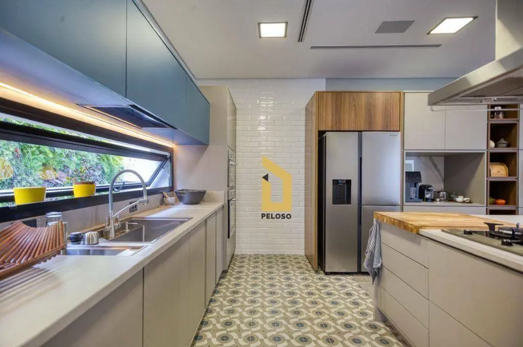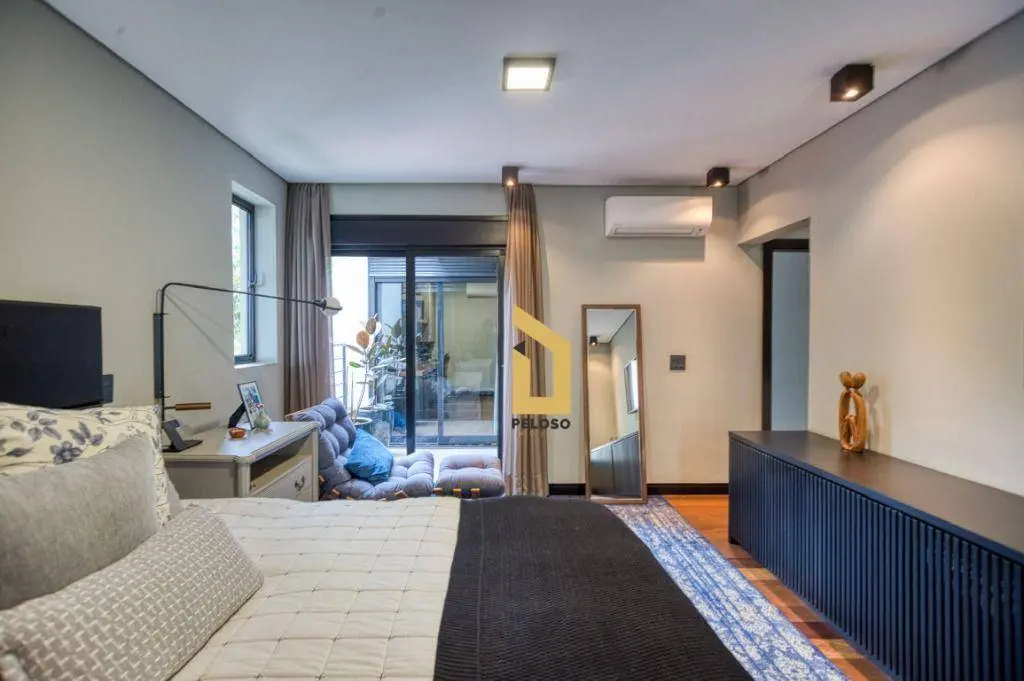 São 3 quartos (1 suíte com amplo closet) e ambientes integrados com pé-direito superior a 3 metros, piso de madeira nos dormitórios e acabamentos de alto padrão, incluindo metais Hansgrohe.