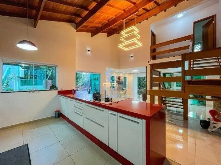 Localizada no Condomínio Reserva das Hortênsias, esta linda casa seminova oferece conforto, privacidade e um ambiente privilegiado em meio à natureza. Características do Imóvel Terreno: 1.000 m Área construída: 300 m Área íntima ?4 suítes, sendo: ?3 suítes amplas ?1 suíte atualmente transformada em closet completo com sapateira (O espaço pode facilmente voltar a ser suíte, se desejado.) Área social ?Sala de estar ?Sala de jantar ?Cozinha espaçosa ?Despensa ?Lavanderia Ambientes amplos e bem distribuídos, ideais para convivência familiar e recepção de convidados. Área externa ?Piscina ?Banheiro externo ?Jardim com árvores frutíferas: ?Abacate ?Manga ?Acerola ?Amora ?Horta Perfeito para quem busca tranquilidade e contato com a natureza. Diferenciais ?Sistema de água climatizada ?Placas solares para aquecimento da água da casa e da piscina ?2 depósitos ?Garagem para até 6 veículos Segurança: Localizada em condomínio com ronda 24 horas, salão de festas, conveniência, oferecendo segurança e tranquilidade.