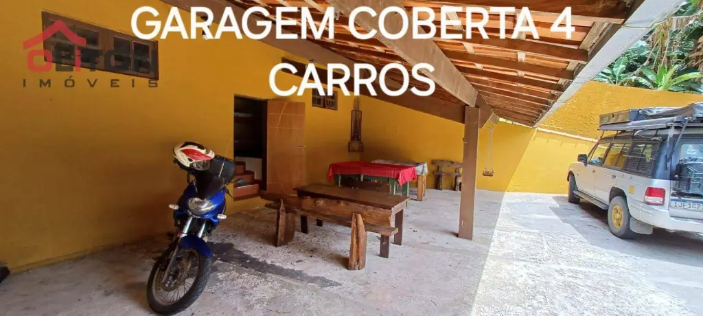 Garagem coberta para 4 carros, com mesa de sinuca e pebolim