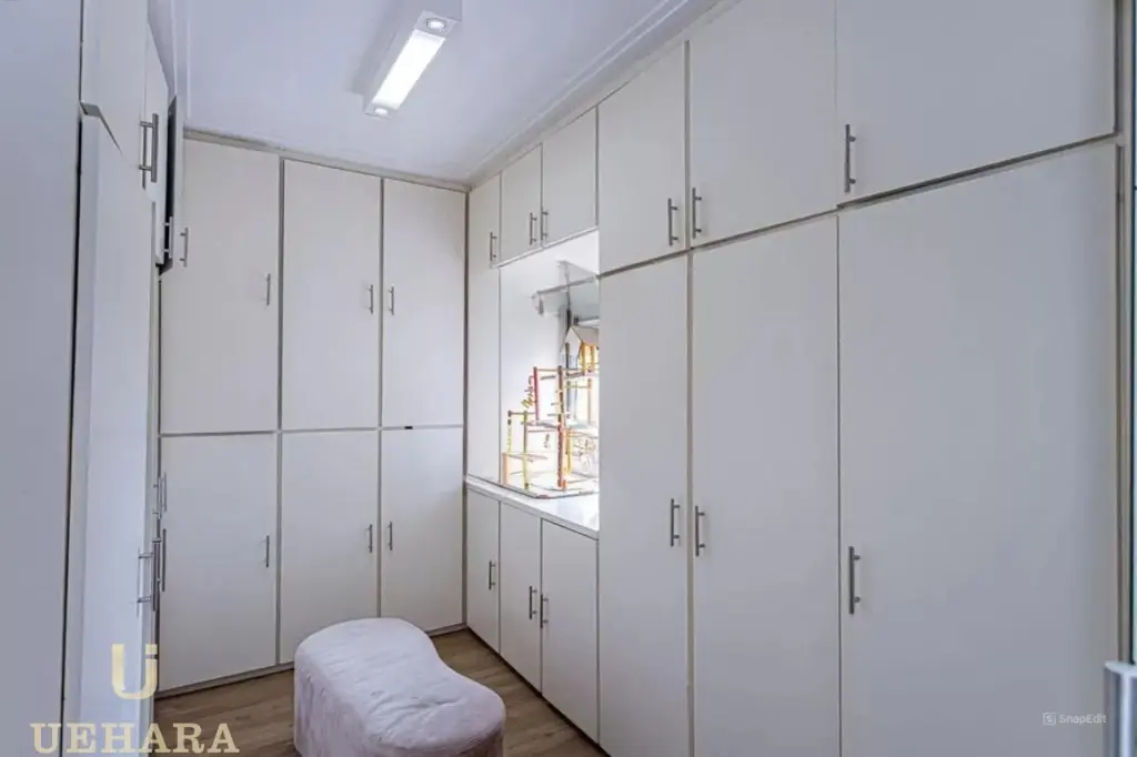 3 quartos, sendo 1, utilizado como closet com armários de madeira (possibilidade de reversão para dormitório).