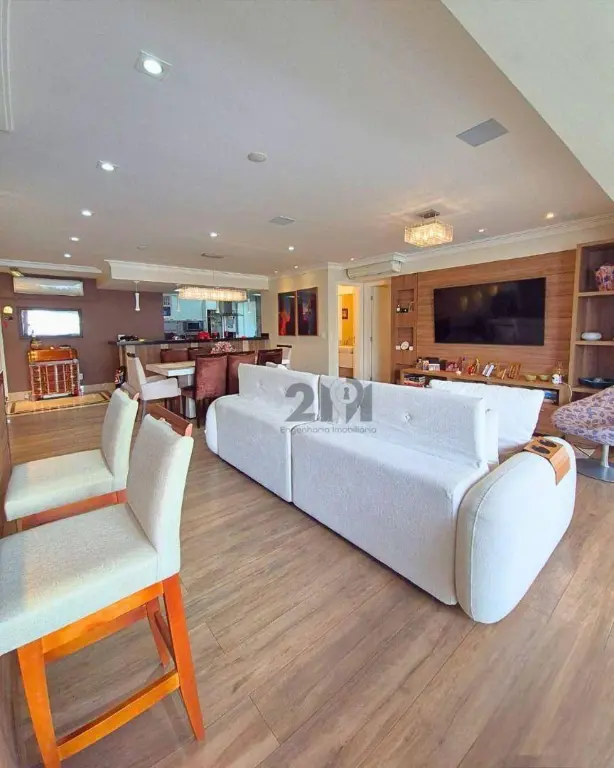 Cozinha americana moderna, integrada ao living que conecta harmoniosamente sala de estar, sala de jantar, bar e varanda gourmet um ambiente acolhedor e fluido, ideal para receber com charme