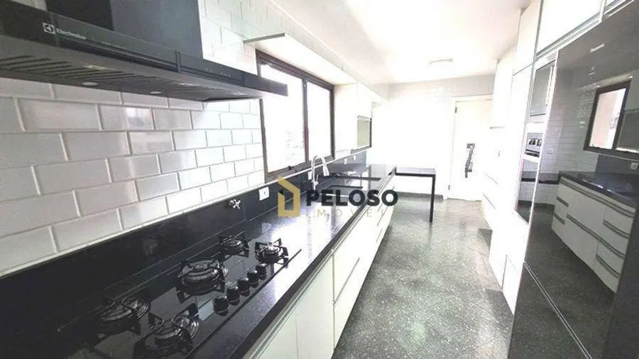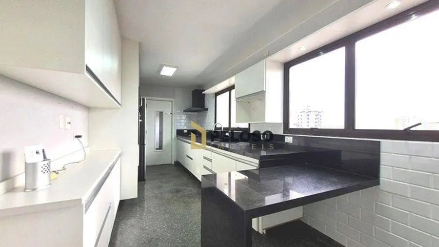 4 suítes, a primeira com armários embutidos, banheiro equipado com box, gabinete e ducha higiênica, a segunda com banheiro completo, box e ducha higiênica e a terceira, com sacada exclusiva, espaçoso closet e um belo banheiro com hidromassagem, o que proporciona momentos de pura tranquilidade, salas de estar, jantar e lareira, linda sacada, luxuoso lavabo, pia em mármore negro, bem iluminado, cozinha planejada, bancada em granito, cooktop e coifa, despensa, área de serviço com banheiro de apoio.
