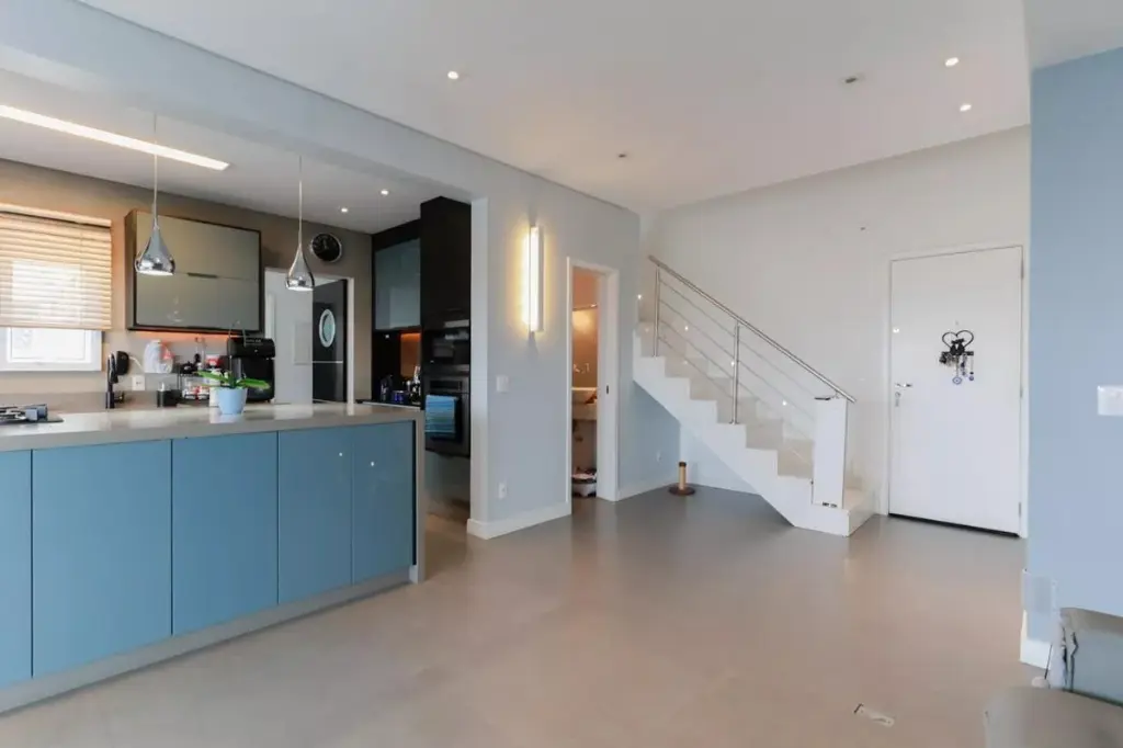 A cozinha americana integrada, a sala de jantar, a lavanderia ampla e o mezanino exclusivo ampliam ainda mais a versatilidade da planta, permitindo diferentes formas de ocupação e convivência. É um imóvel que combina muito bem com famílias, casais que recebem com frequência ou compradores que valorizam um endereço residencial com mobilidade e infraestrutura por perto.