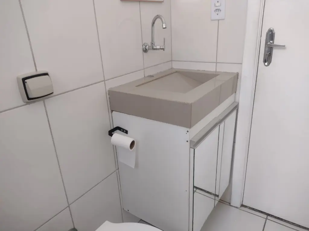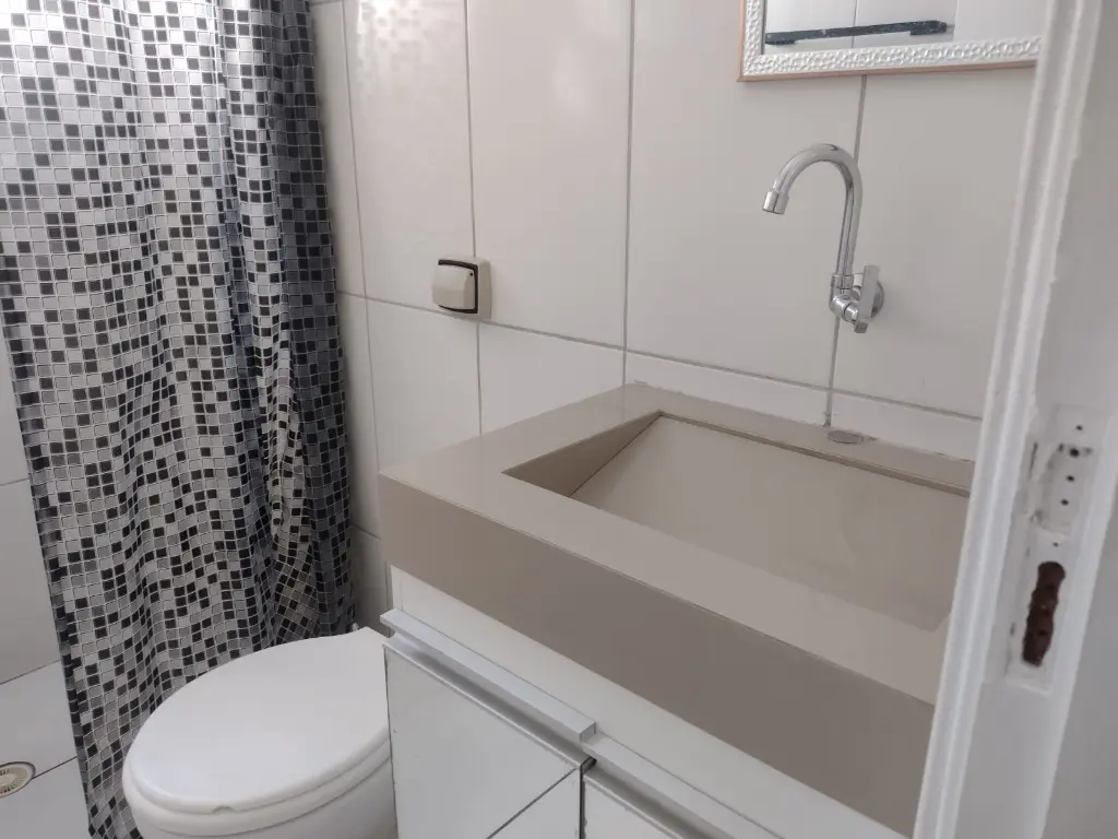 Apartamento em condomínio fechado, com 01 dormitório, sala, cozinha, banheiro e área de serviço. Não há vaga de garagem.