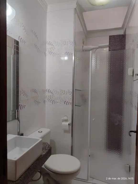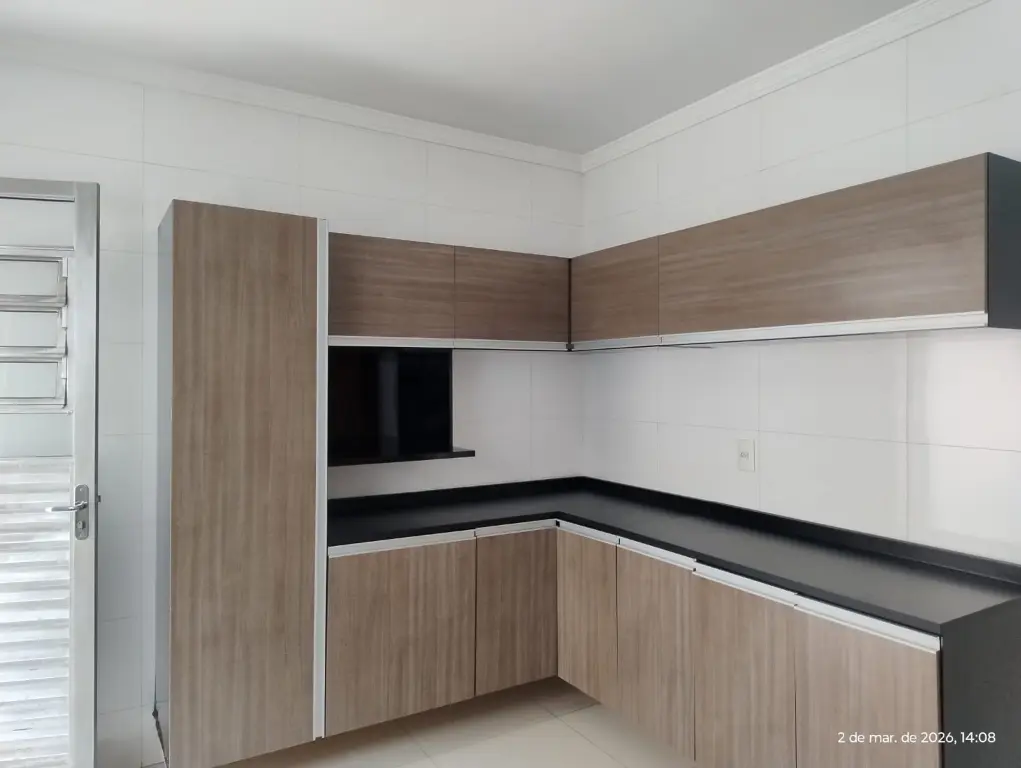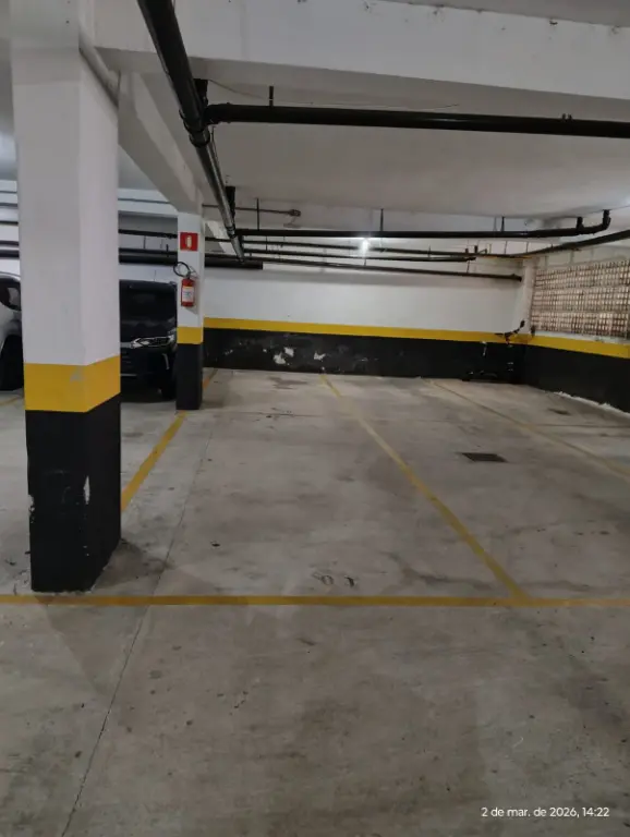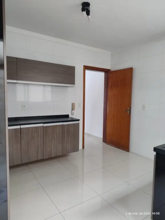 2 Dormitórios, Sala, Cozinha com Armários, W/C, Lavabo, Área de Serviço, 02 vagas. Quarto com pequena sacada.
