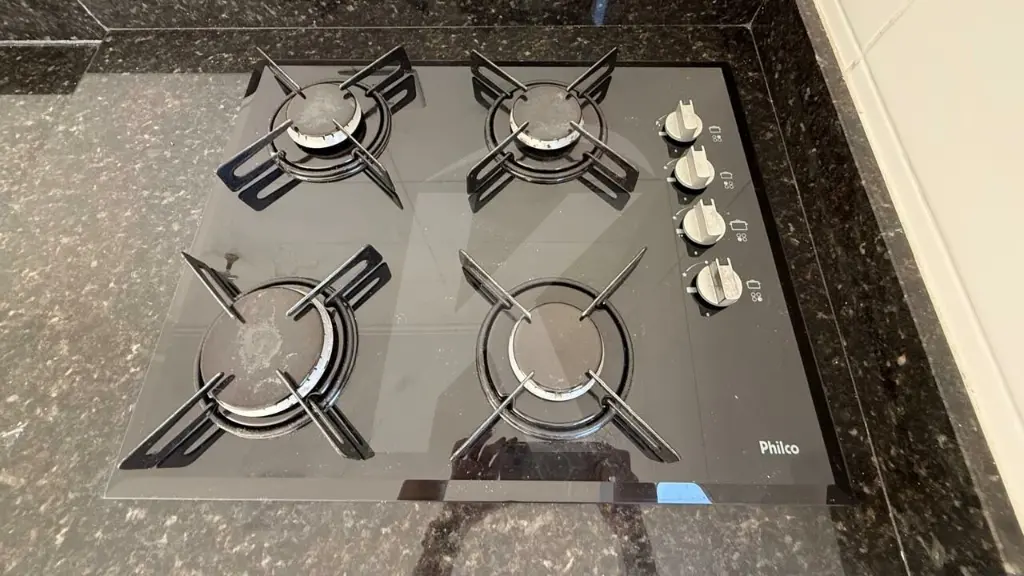 Cozinha equipada com cooktop de 4 bocas e armários, com previsão de instalação de armários aéreos