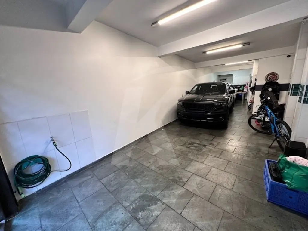 Ampla garagem para 3 carros, espaço para moto e bicicletário