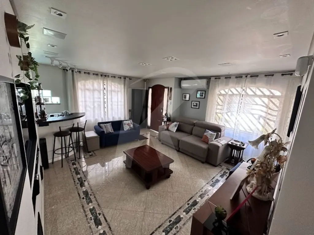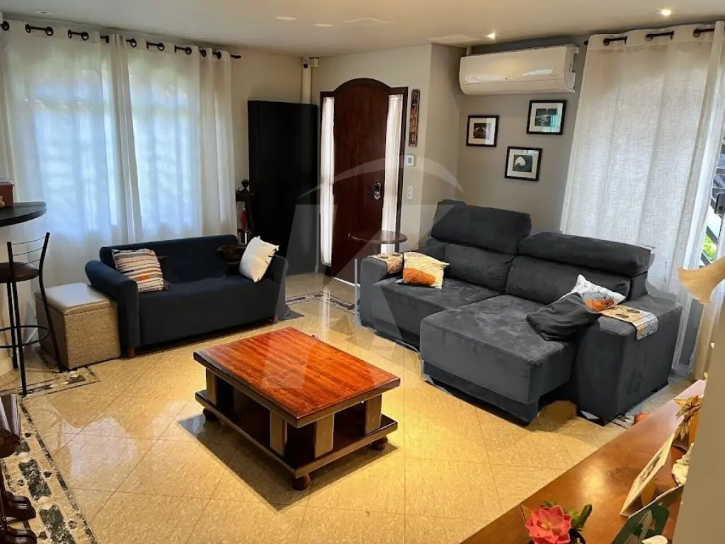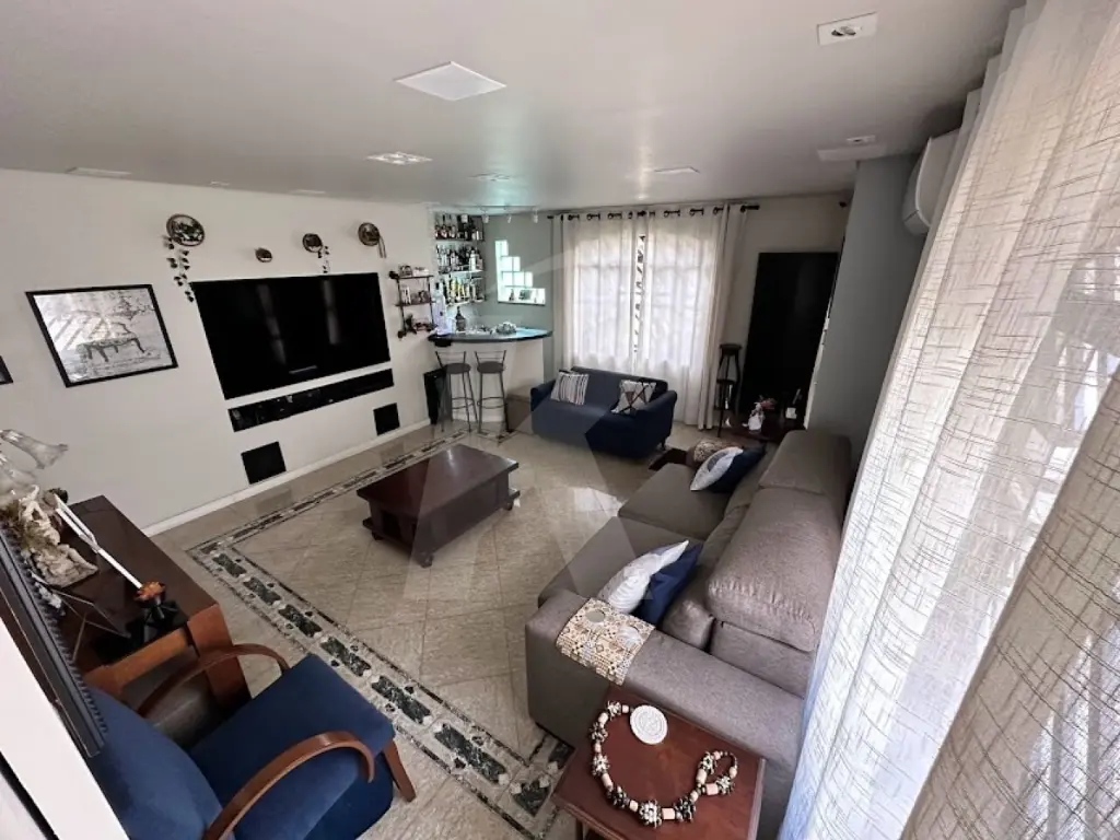 Sala ampla e climatizada, perfeita para receber amigos e família