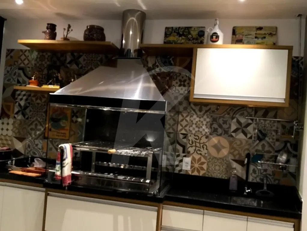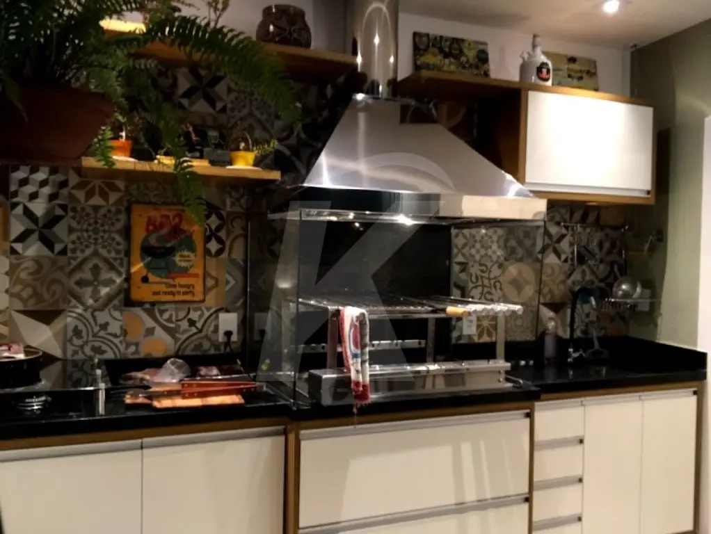 Quintal com área gourmet completa: pia, churrasqueira e cooktop