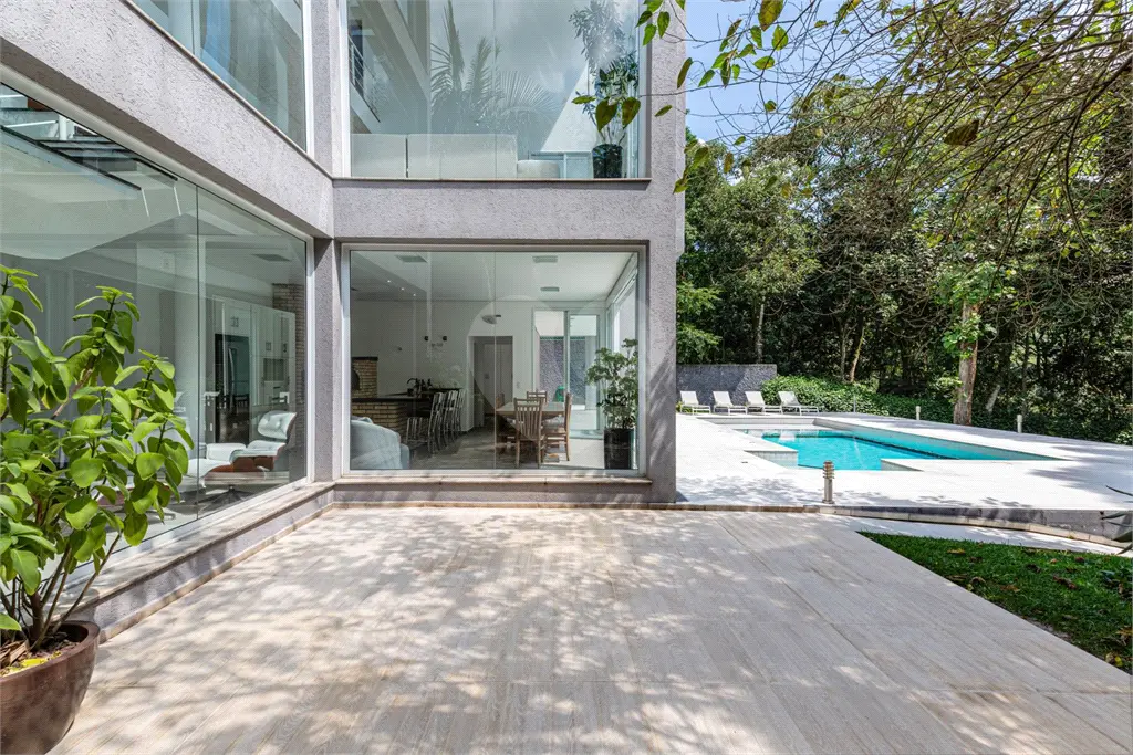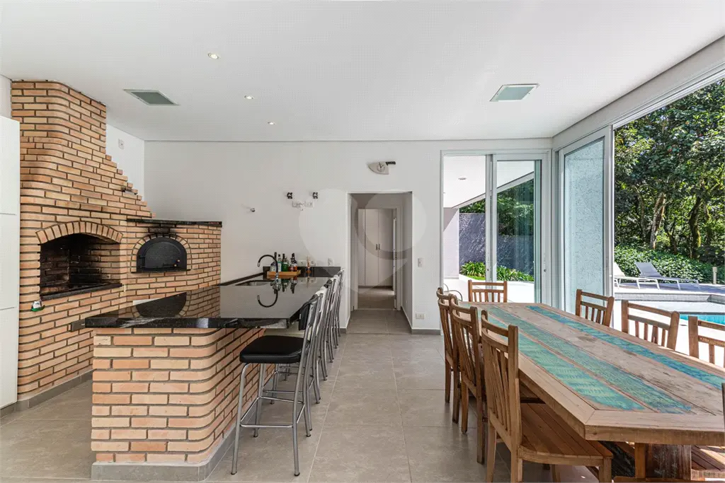 No espaço de lazer, incluindo uma segunda área gourmet com churrasqueira, forno a lenha para pizza, espaço de TV e home theater, espaço jantar com ilha, ducha ao ar livre, banheiro social, piscina com praia e hidro aquecida e um belo jardim com vista para a mata atlântica.