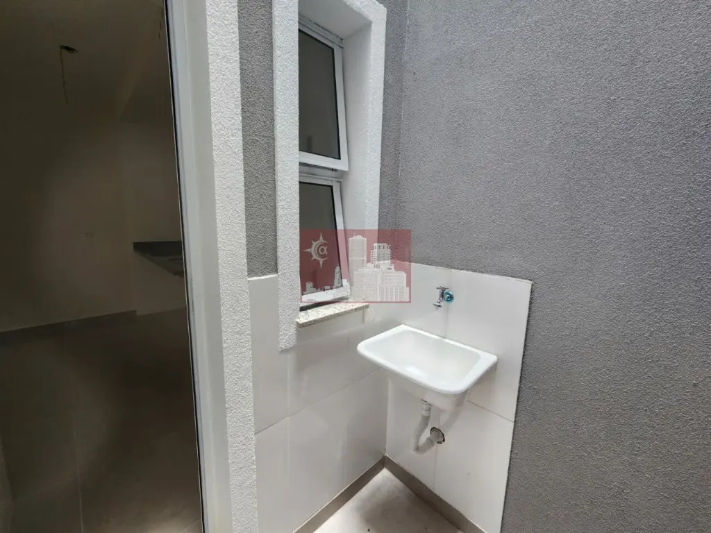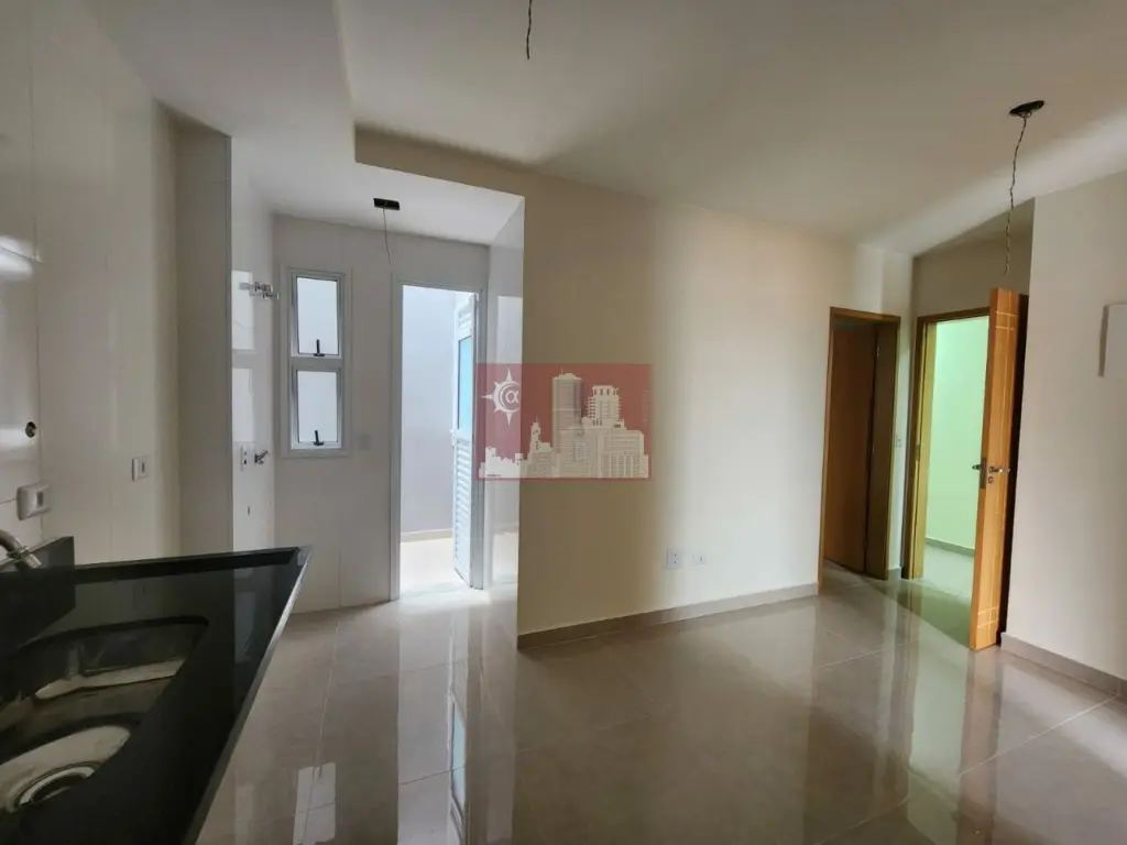 São 2 dormitórios, 1 deles com uma pequena sacada, sala conjugada coma cozinha, área de serviço e um pequeno quintal.