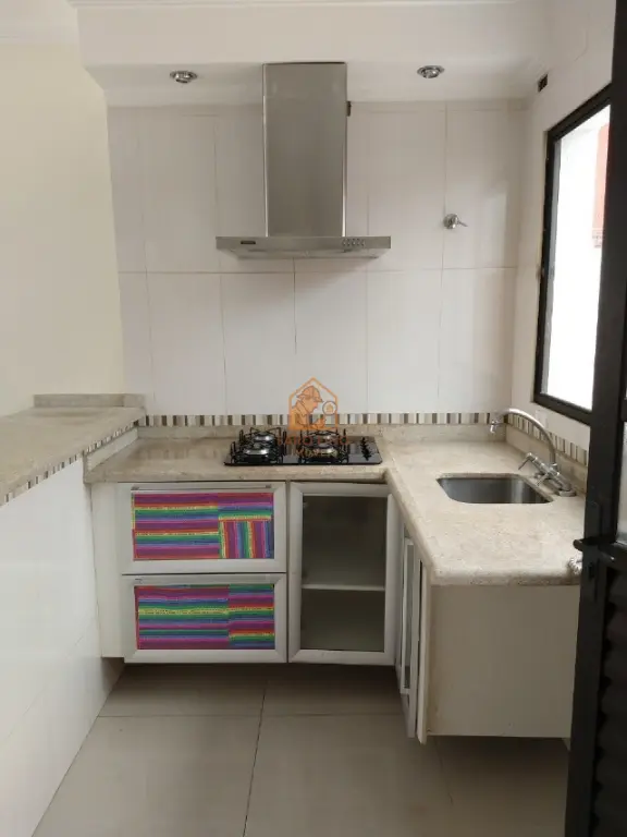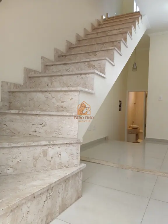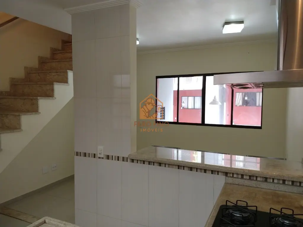 Casa em condomínio fechado com 2 quartos, cozinha americana com bancada em mármore, pia, coifa e cooktop, 2 banheiros sendo 1 lavabo, 2 vagas na garagem, quintal com churrasqueira e lavanderia.