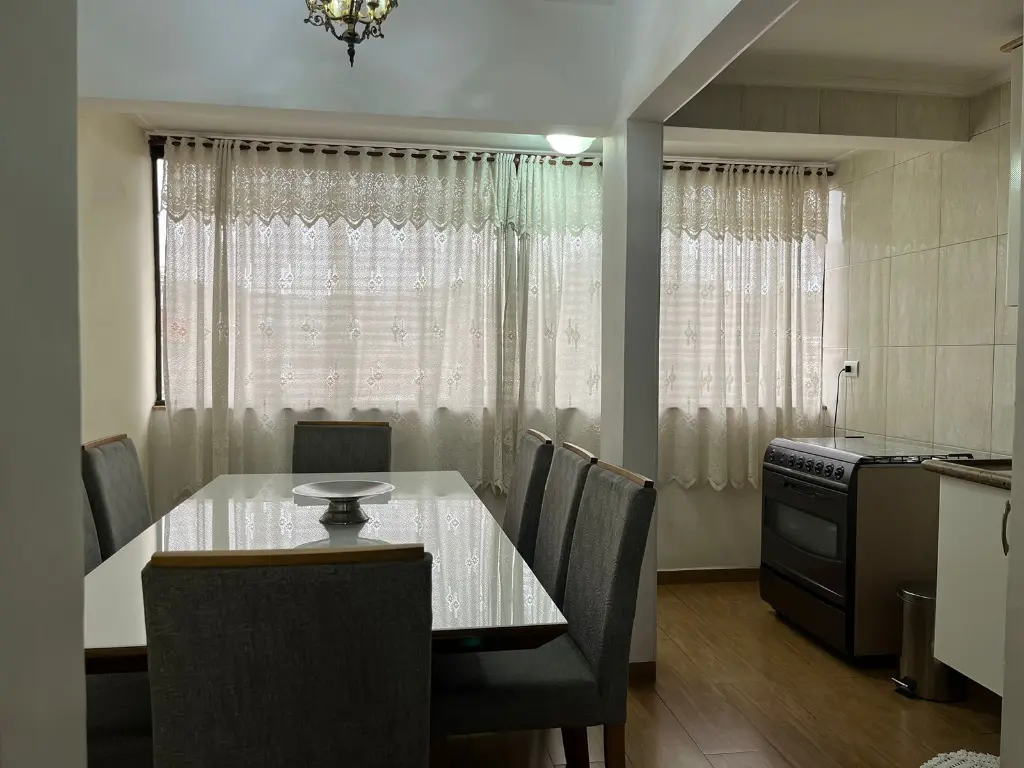 Primeiro andar: sala de tv, sala de jantar, cozinha americana e lavabo