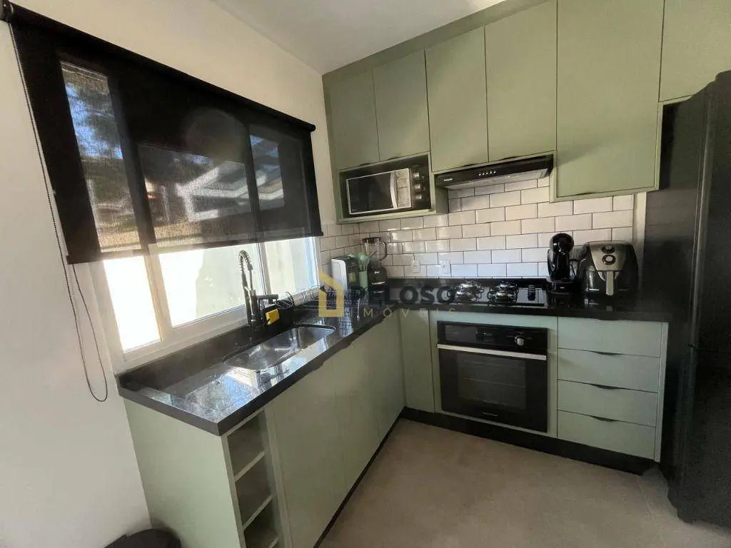 Sala para 2 ambientes, 2 suítes, lavabo, cozinha planejada, repleto de armários embutidos (cozinha, suítes, banheiros e área de serviço).