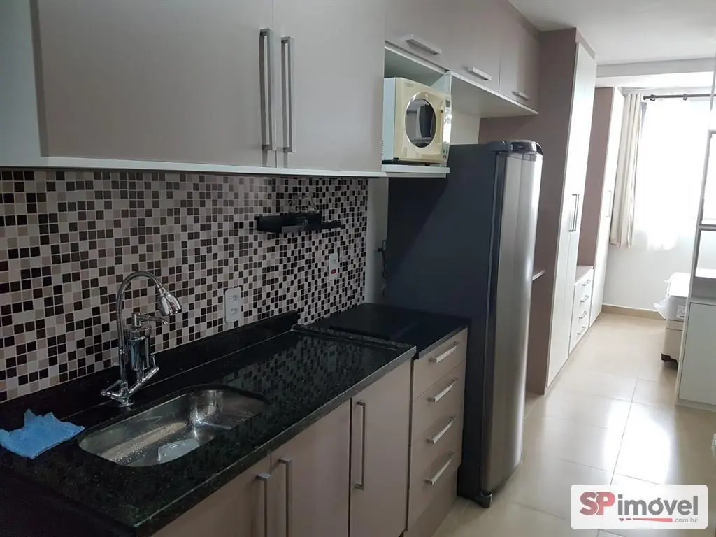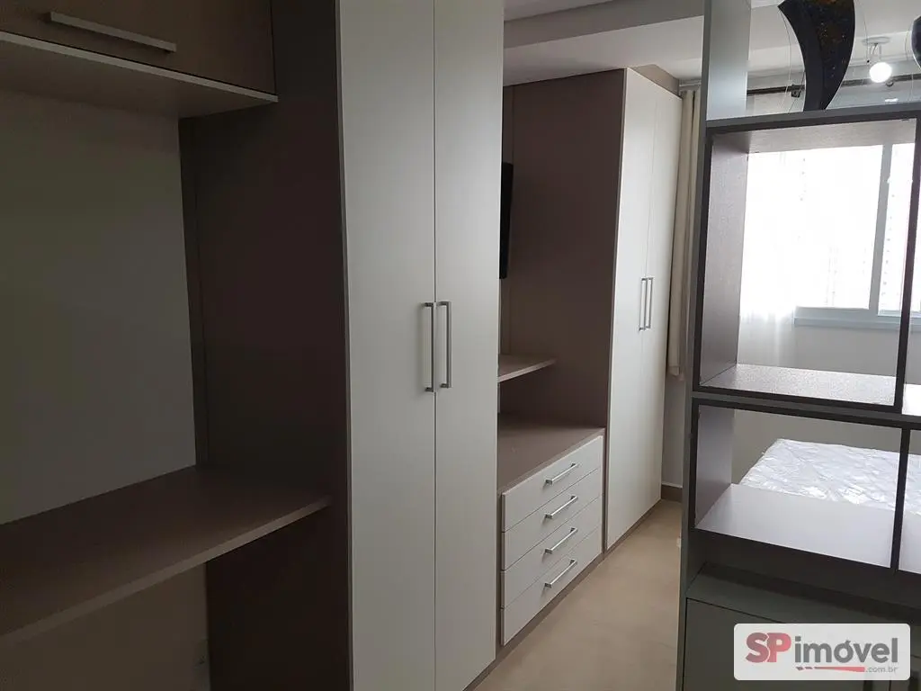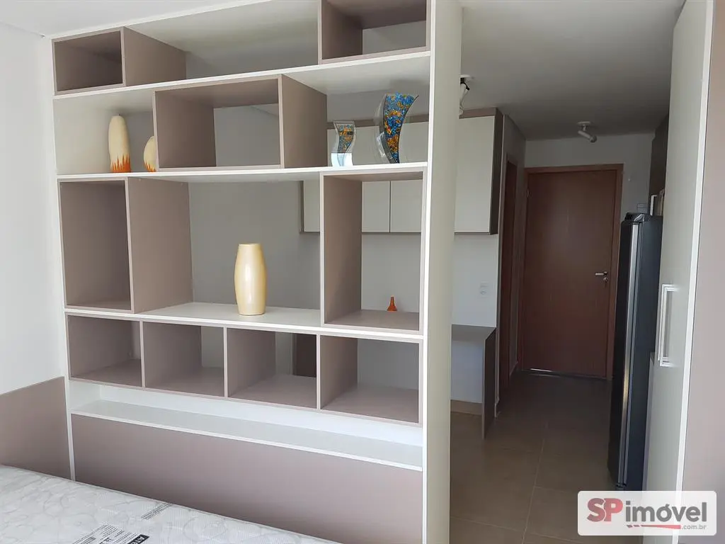 Excelente stúdio de 25m², dividido em um dormitório, sala, cozinha, banheiro e uma vaga de garagem. Mobiliado com geladeira frost free, microondas, Smart TV de 43', cortina blackout, cama de casa com baú, e armários.