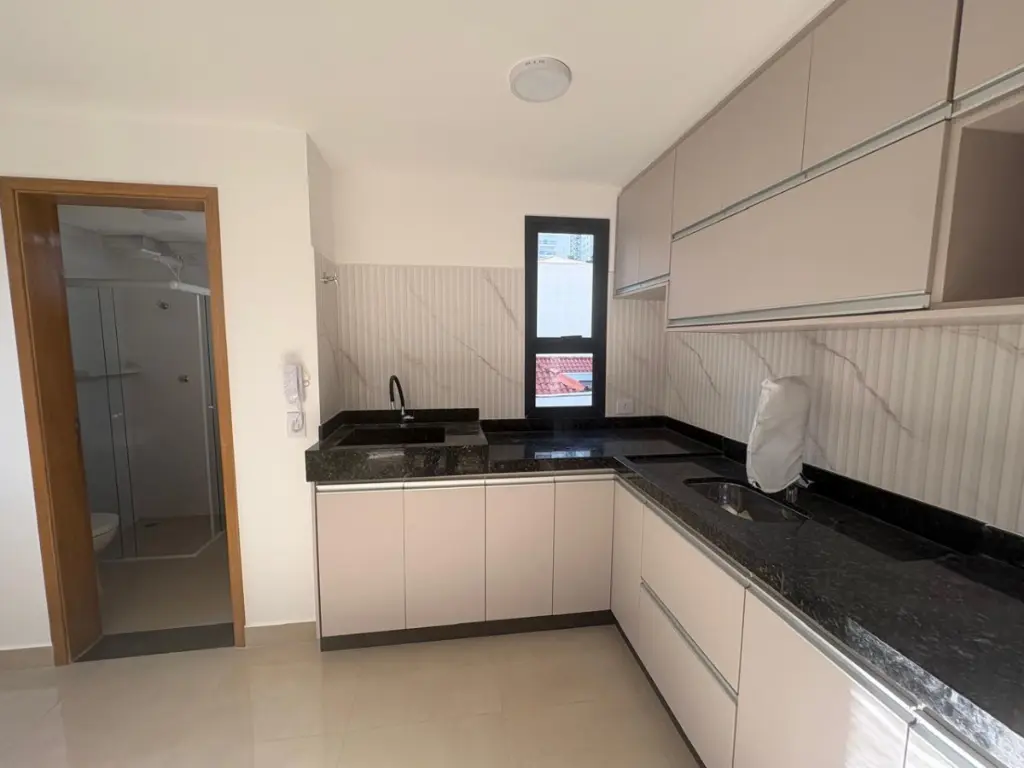O apartamento conta com 1 suíte, proporcionando conforto e privacidade. O banheiro é bem distribuído e atende perfeitamente às necessidades do dia a dia. A cozinha integrada, com móveis planejados, otimiza o espaço e traz praticidade, além de contar com uma área de serviço funcional.