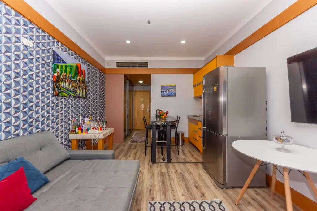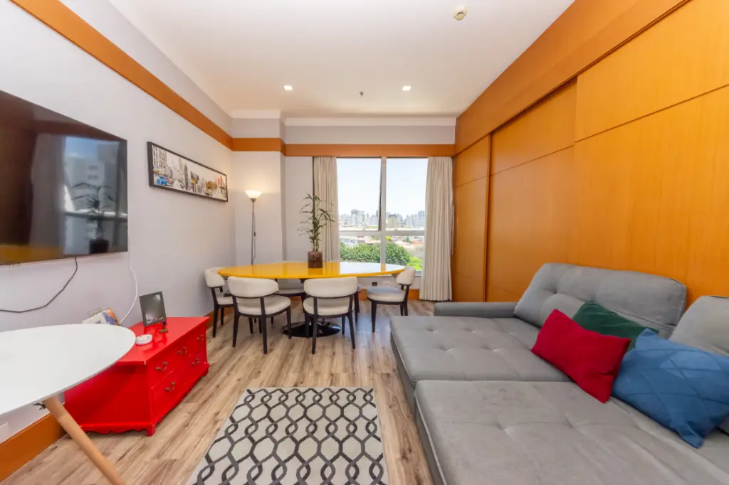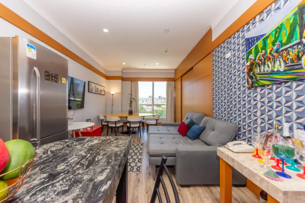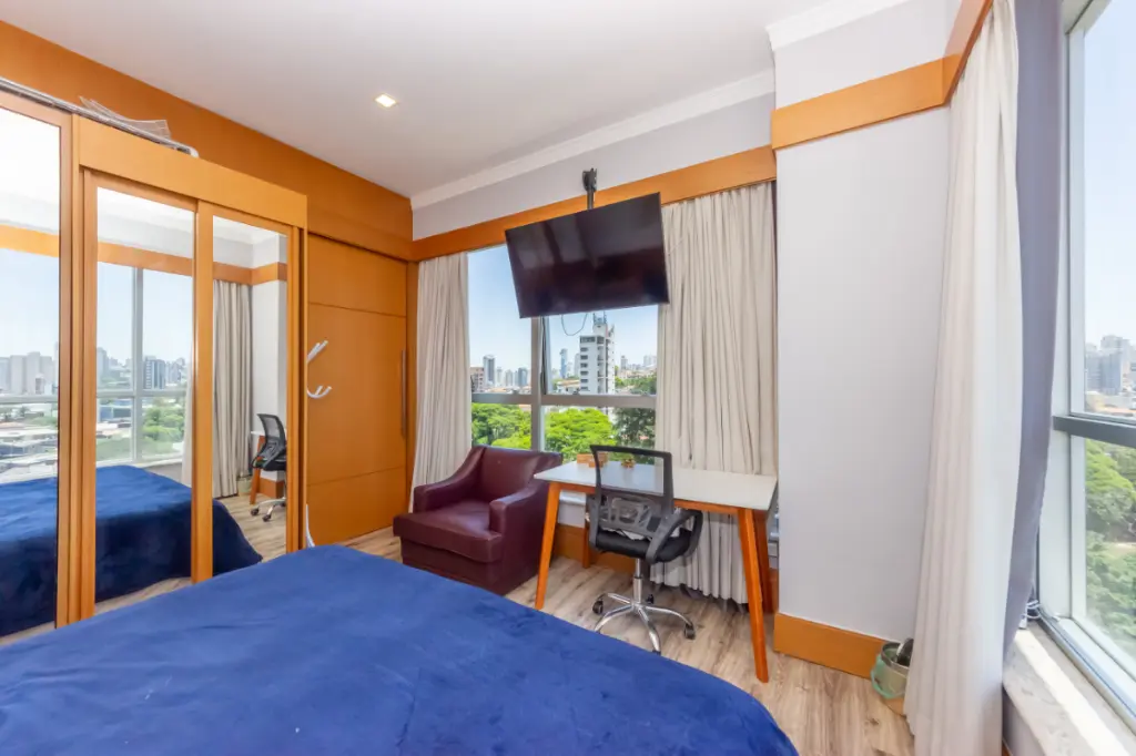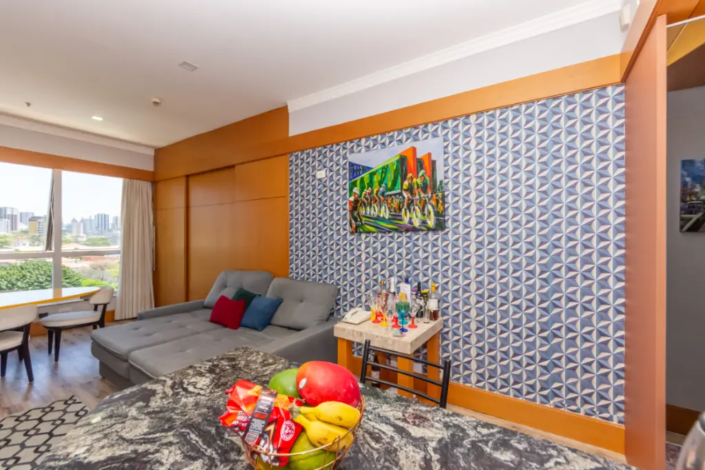 Este flat decorado possui 49m², distribuídos em 1 dormitório, 1 suíte minicozinha, sala de tv e mesa de jantarem um ambiente integrado, e 1 vaga de garagem. Ideal para quem busca comodidade, funcionalidade e uma excelente localização em um dos bairros mais valorizados da região.