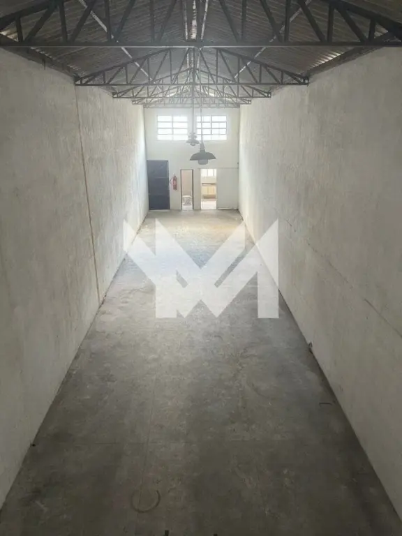 Galpão com mais 2 depósitos nos fundos, dois banheiros, duas vagas, recepção, escritório, cozinha.