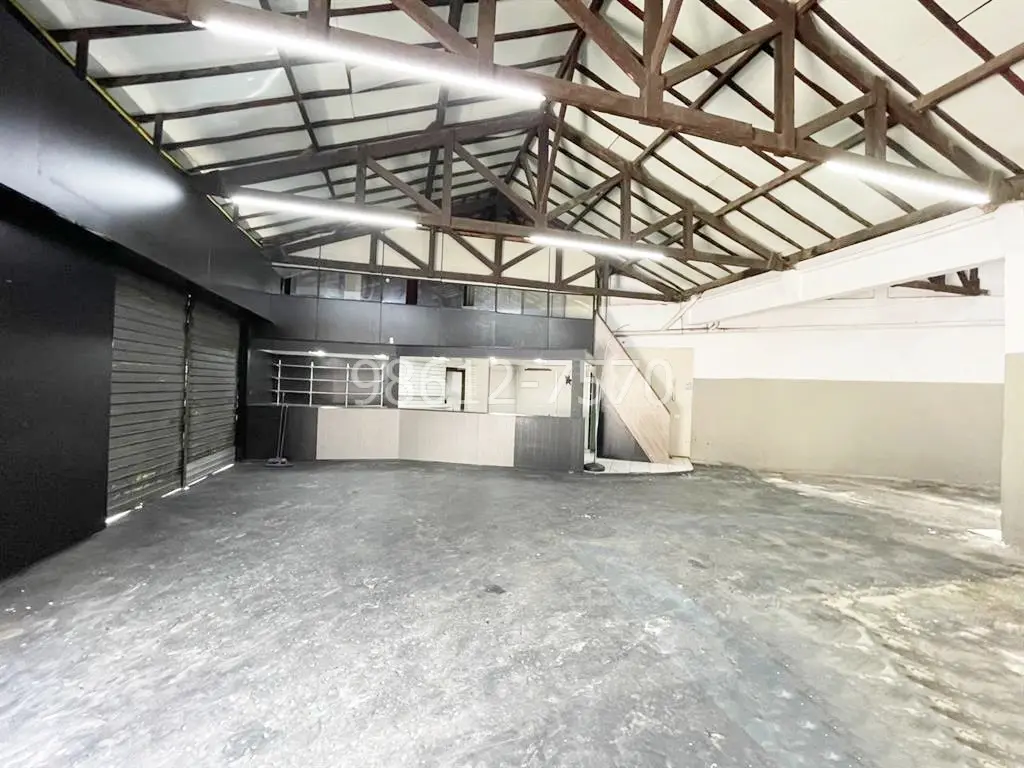 2 galpões lado a lado, podendo ser alugados juntos, formando uma área util de 600m², coberto e 300m² descobertos, frente com grande recuo para estacionamento, salão amplo, 4 banheiros, vestiário e mezanino com escritório.