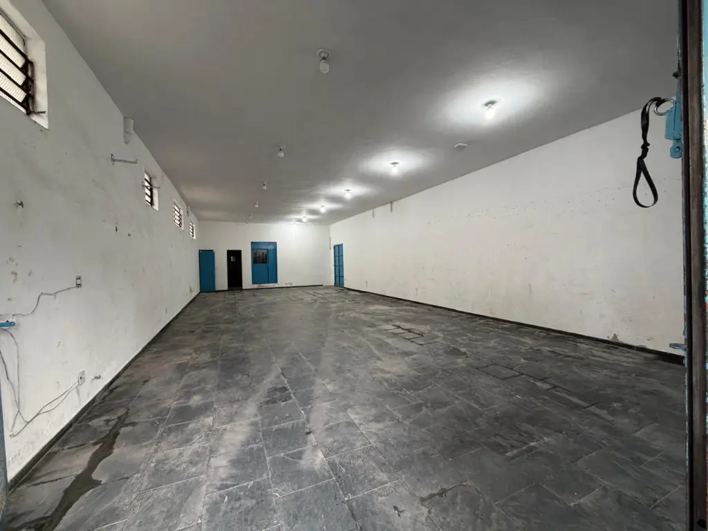 Salão comercial com aproximadamente 150 m2, banheiro e direito a 3 vagas de garagem.