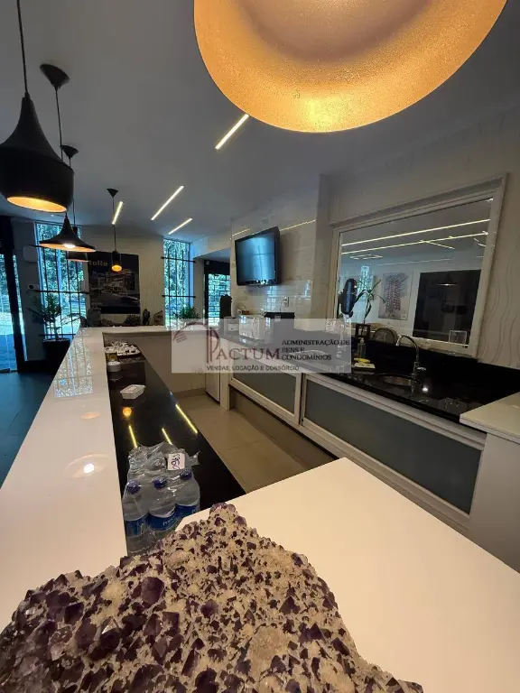 Totalmente mobiliada, com mesas, cadeiras e móveis planejados