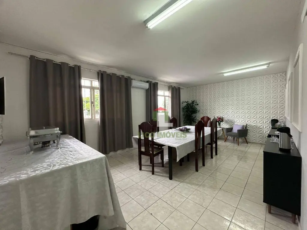 O pavimento superior também é locado para a mesma igreja, onde possui salas de escritório, banheiros e cozinha equipada. A construção com poucos pilares no salão superior também possibilidade a adaptação para todo tipo de negócio.