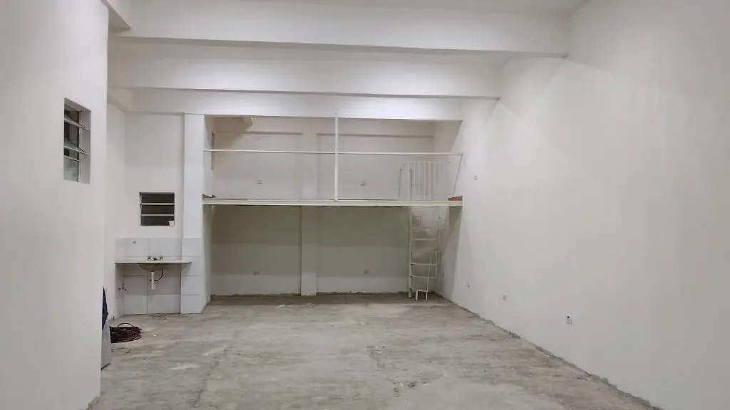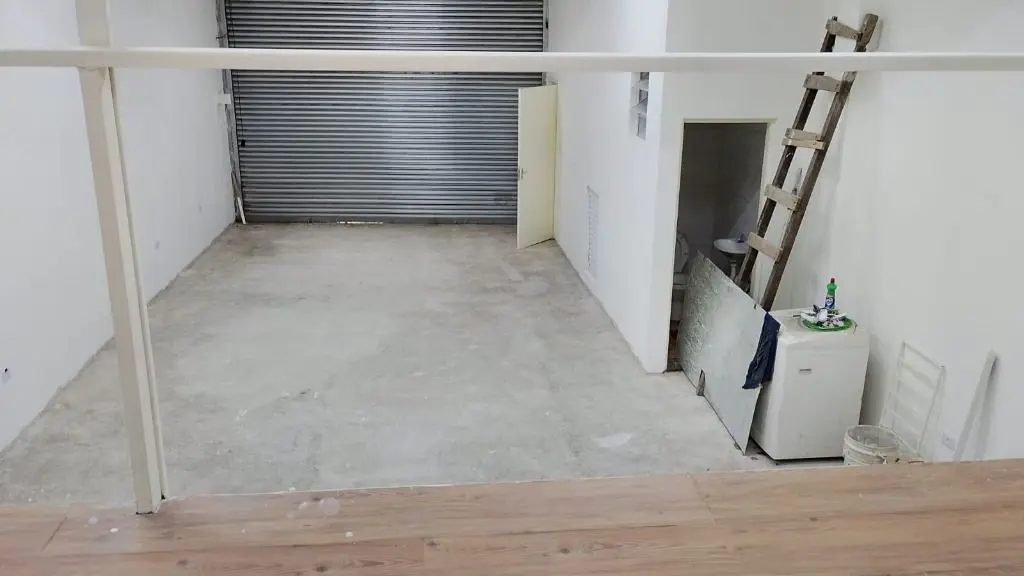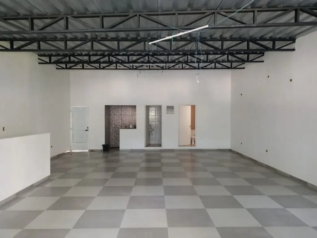 Salão térreo 104m², frente para avenida com mezanino, pé direito de 4m, porta de aço automatizada, luminárias instaladas, 2 banheiros, pia para copa, piso a ser instalado conforme necessidade do cliente por conta do proprietário