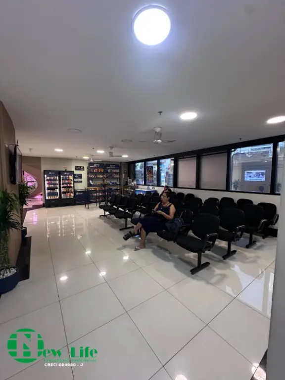 Sala de espera com televisão e mini mercado
