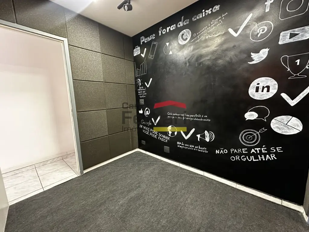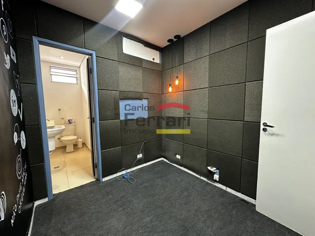O imóvel também possui uma copa de apoio para colaboradores, além de uma sala adicional com isolamento acústico e banheiro privativo, adequada para reuniões, gravações, atendimentos reservados ou consultório. No total, o espaço possui 3 banheiros, oferecendo praticidade para equipes e clientes.