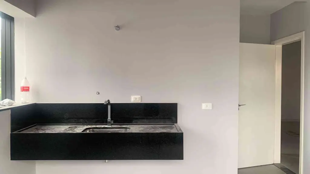 ACABAMENTO DE PRIMEIRA, PISO PORCELANATO 81x81, ESCADA, SOLEIRAS E BATENTE DAS JANELAS EM GRANITO PRETO, JANELAS MAXILAR ALUMINIOS PRETO, BANHEIROS AZULEJADOS ATÉ O TETO,