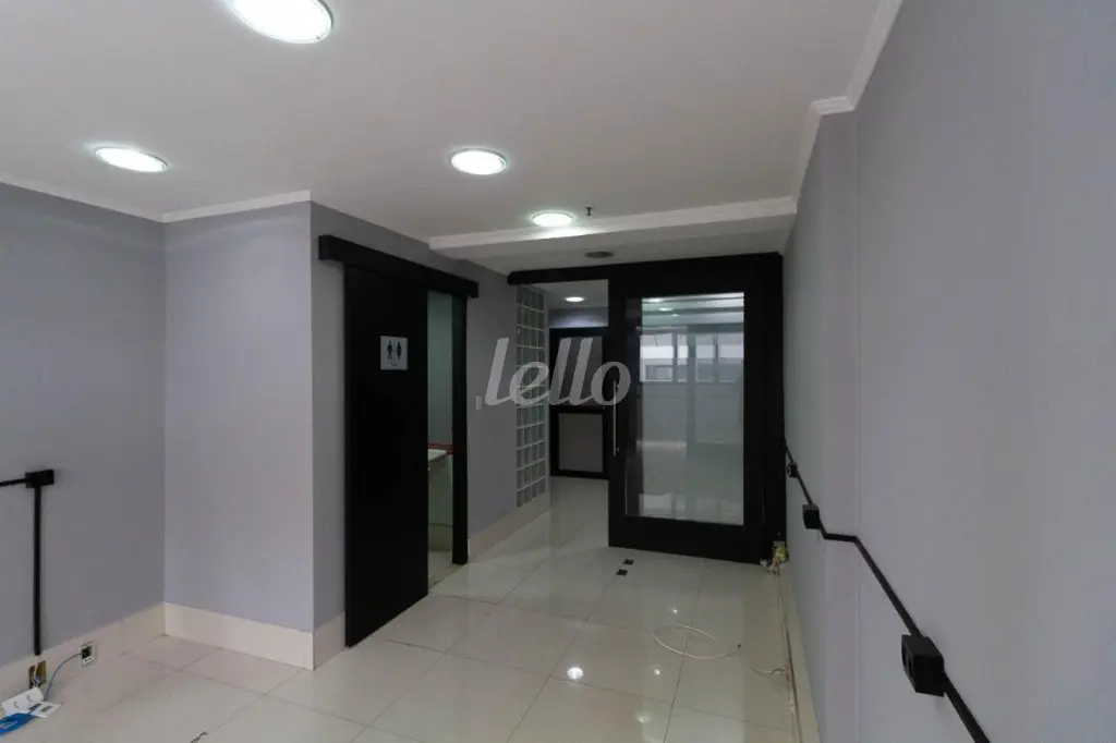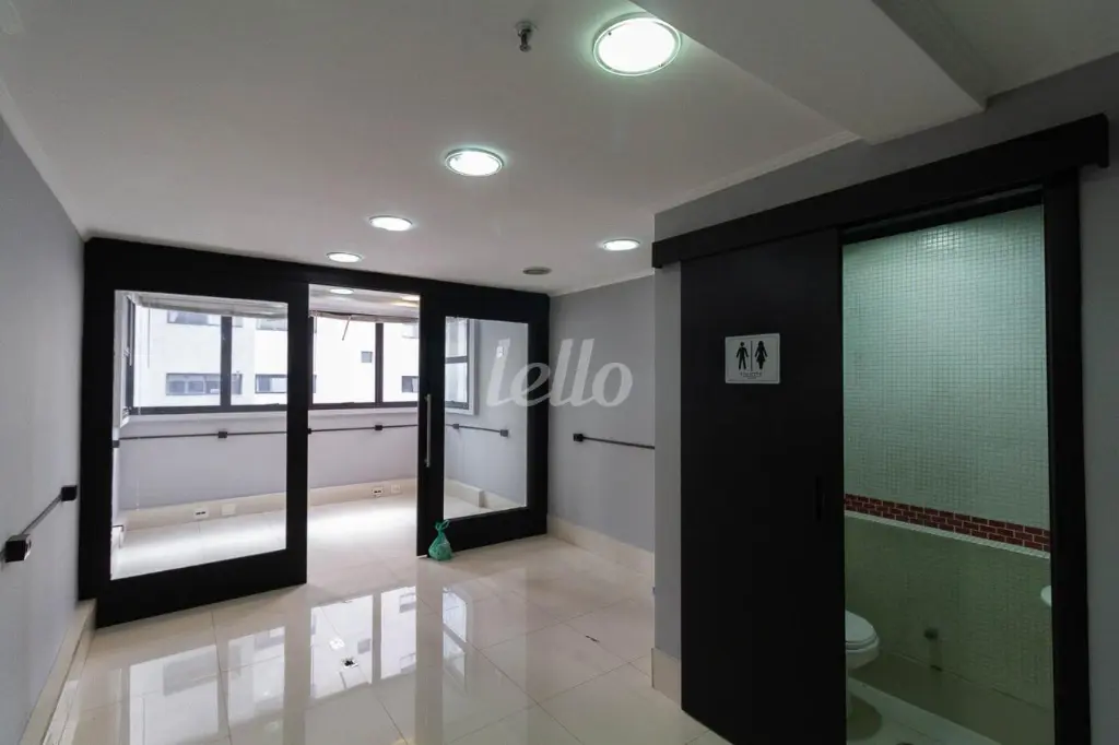 Excelente sala com 37m², toda em piso porcelanato, com porta de vidro, recepção, banheiro social e 1 vaga de garagem.