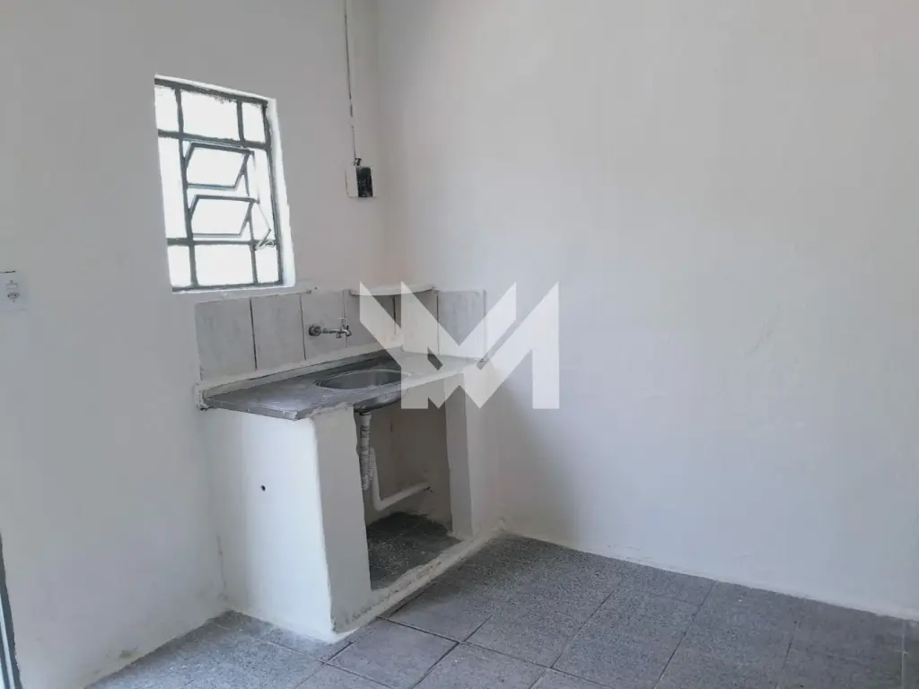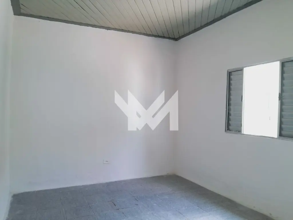 Casa de 50m² com 1 quarto, cozinha, banheiro e área de serviço.
