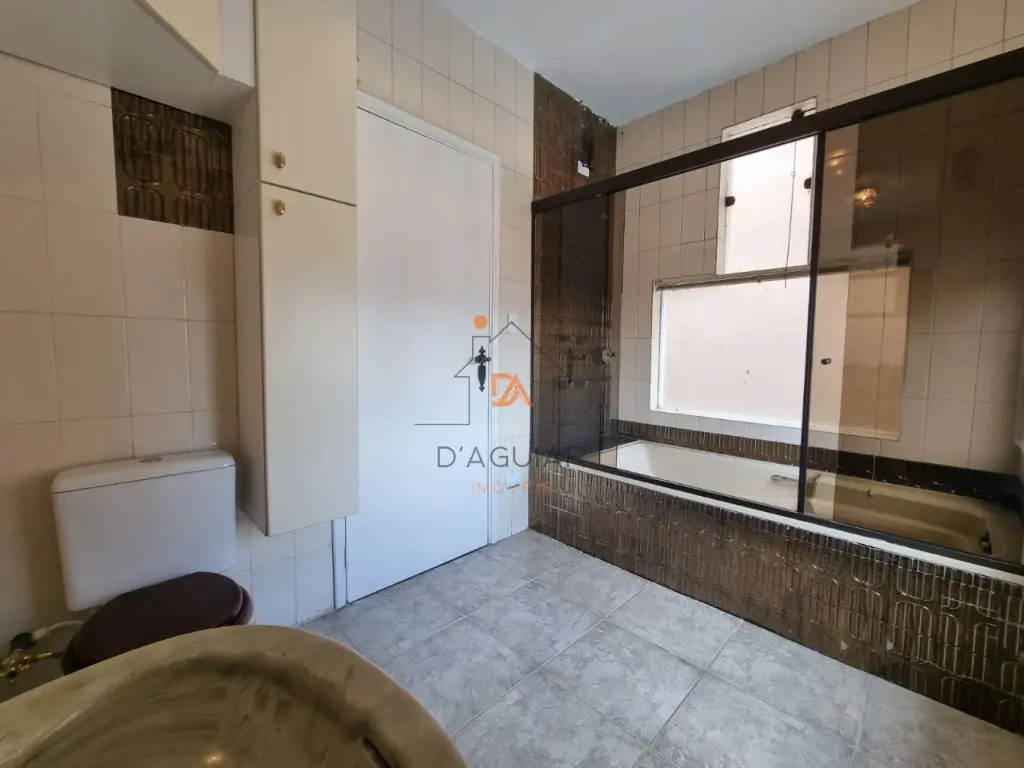 Conta também com duas casas no quintal, sendo uma casa de caseiro com lavanderia e banheiro, e uma casa de hóspedes tipo estúdio, com piso especial, bancada decorativa, cozinha integrada, banheiro com box de vidro e quarto espaçoso.