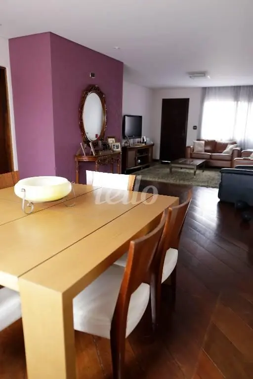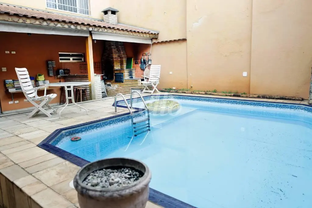 Três dormitórios, sendo três suítes, sala para dois ambientes, lavabo, banheiro social, piso em madeira, cozinha com armários planejados, escritório, área de serviço, quintal com edícula, piscina e churrasqueira, forno de pizza, cinco vagas, portão automático
