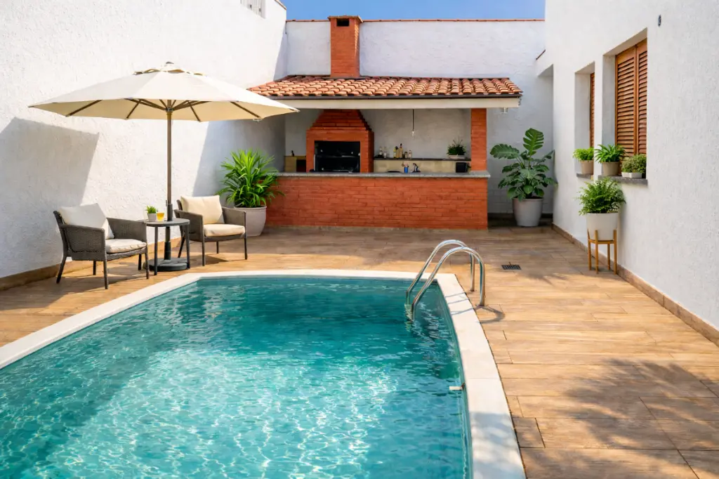 Para momentos de lazer, o imóvel conta com uma piscina e um espaço gourmet com churrasqueira, perfeito para receber amigos e familiares. O living é aconchegante, com uma lareira que proporciona um clima acolhedor.