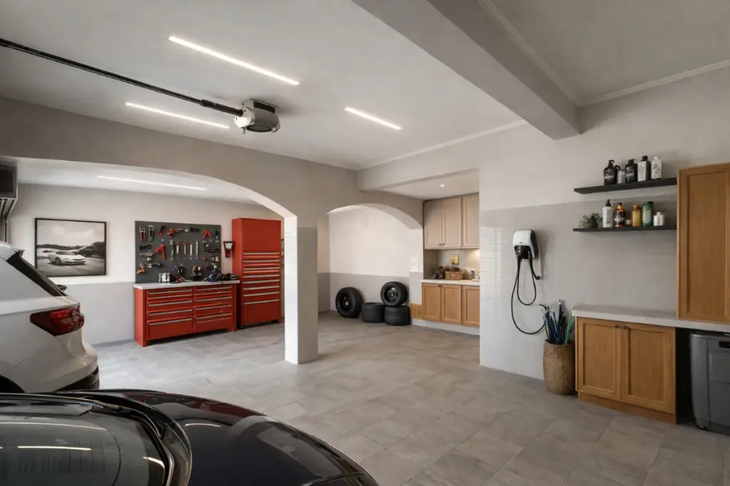Com 5 vagas de garagem, oferece comodidade e segurança. O piso é uma combinação de madeira, porcelanato e laminado, garantindo beleza e praticidade. O sistema de aquecimento central, alarme e interfone adicionam segurança e conforto ao dia a dia.