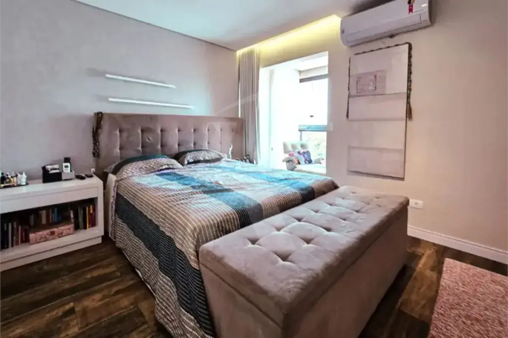 O imóvel conta com três dormitórios, sendo uma suíte com closet, além de quatro vagas de garagem cobertas. A área de lazer privativa é um dos destaques, incluindo SPA com capacidade para até seis pessoas e espaço gourmet completo.